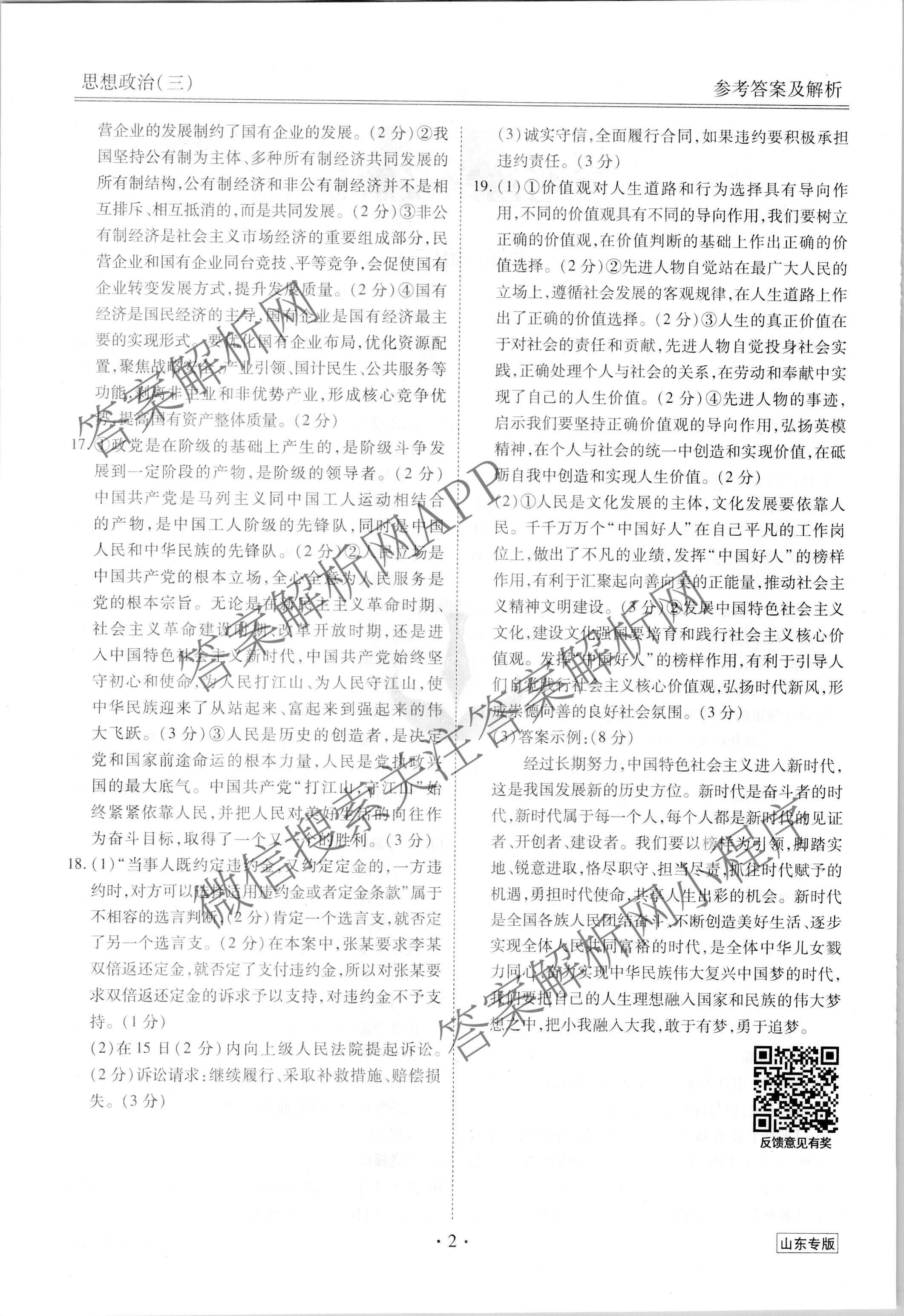 - 2023届(衡水金卷先享题) 调研卷 政治(山东专版)(三)3答案