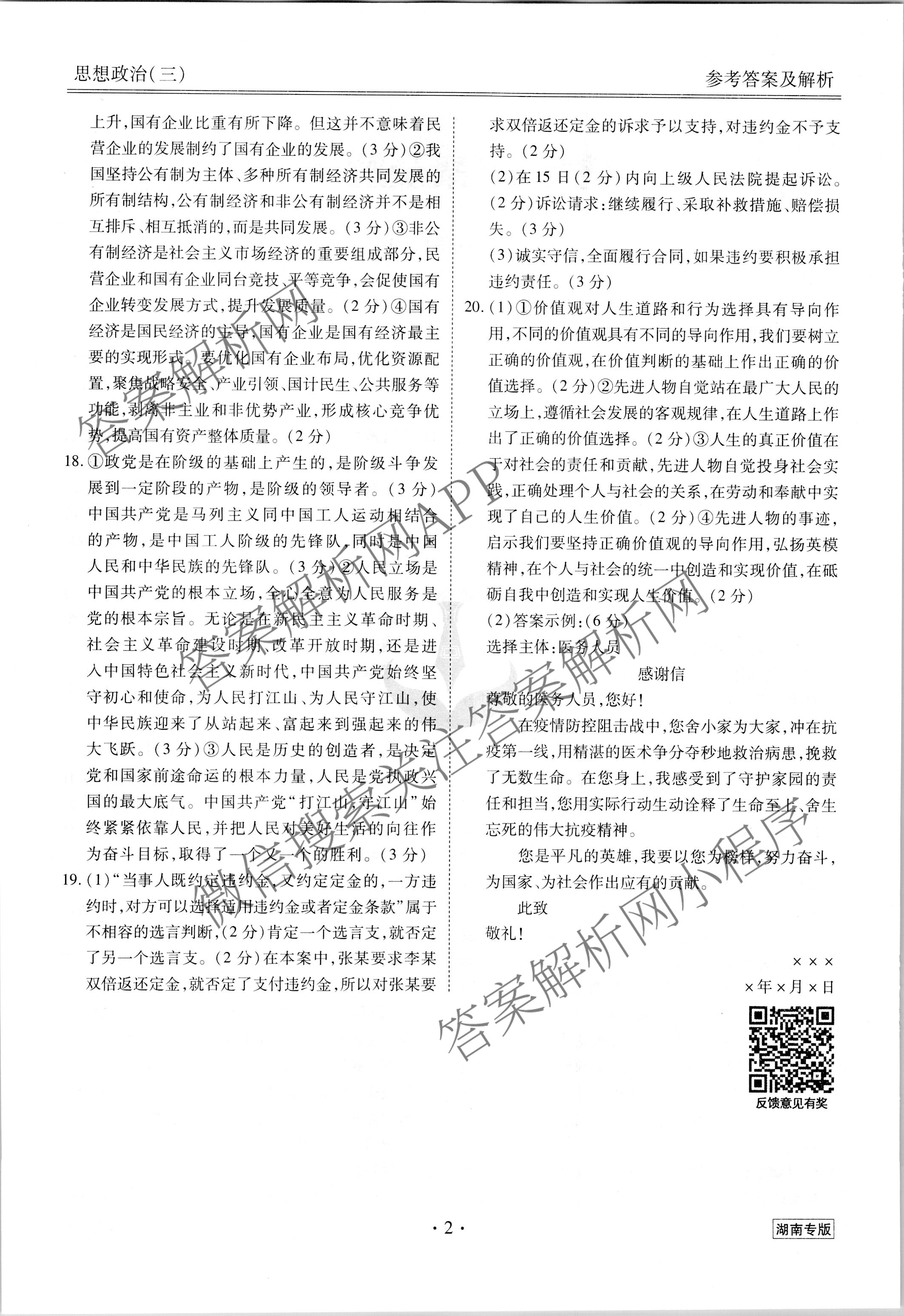 - [高三](衡水金卷先享题) 2023届调研卷 政治(湖南专版)(三)3答案