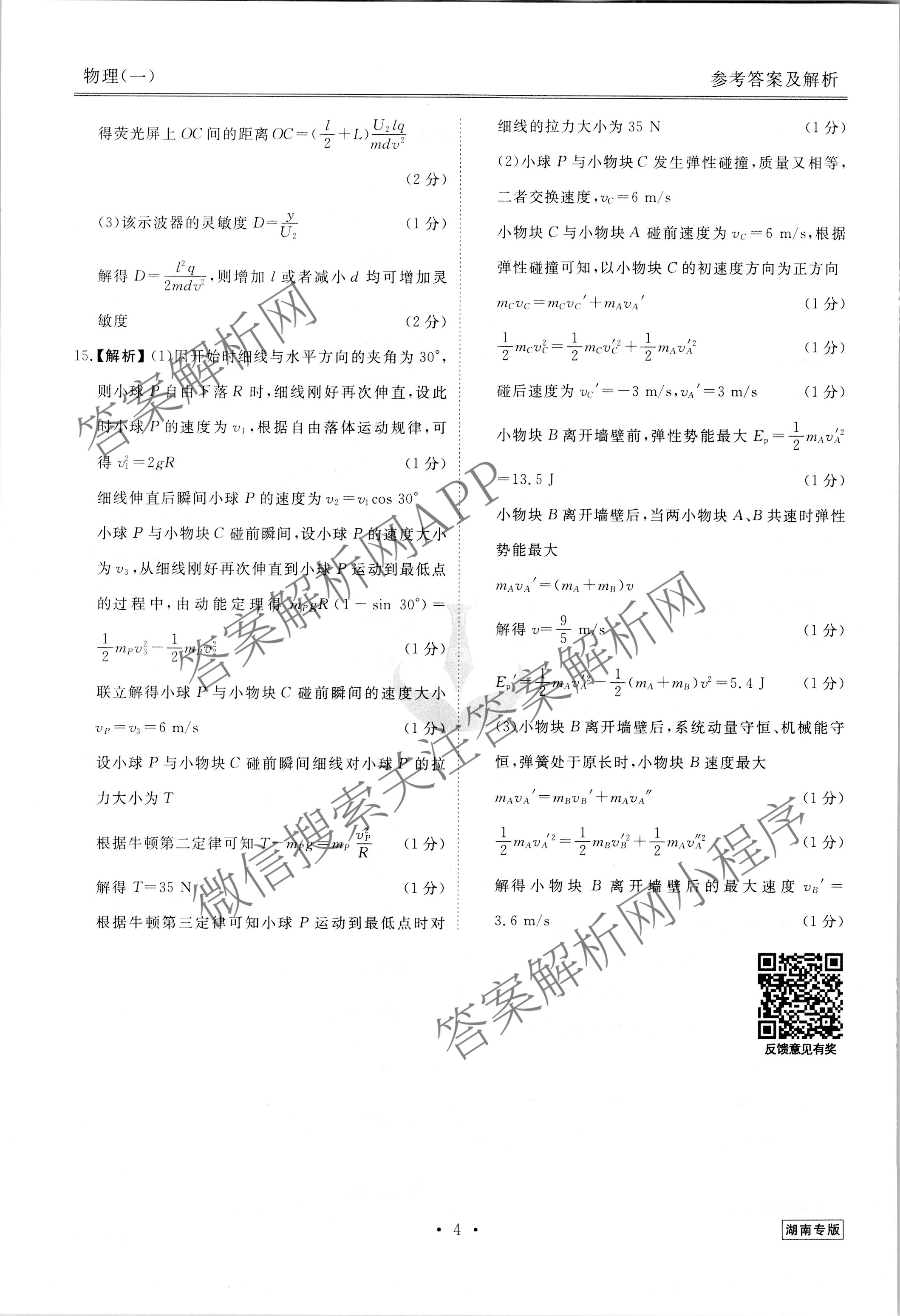 (高三)[衡水金卷先享题] 2023届调研卷 物理(湖南专版)(一)1答案