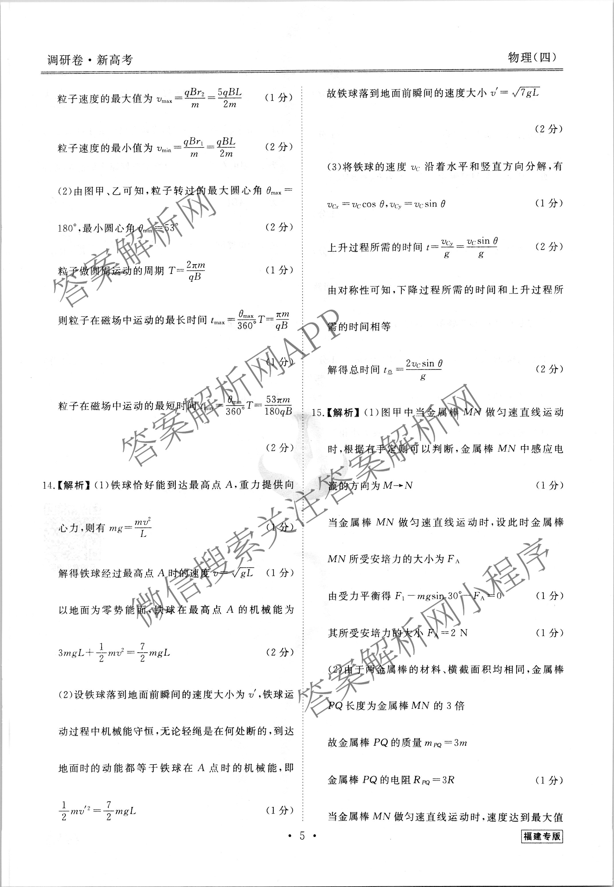 2023届(衡水金卷先享题) 调研卷 物理(福建专版)(四)4答案