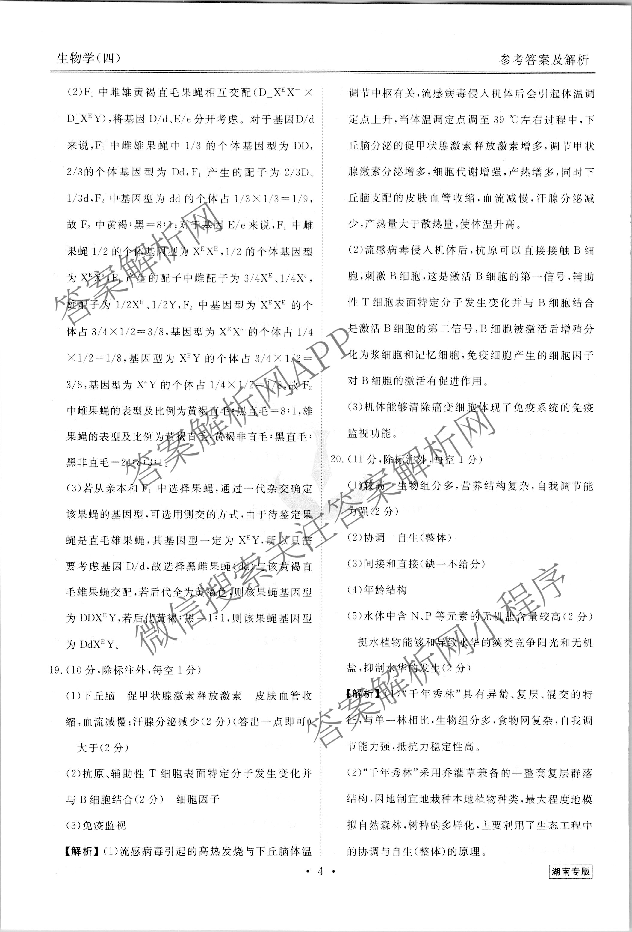 [高三][衡水金卷先享题] 2023届调研卷 生物(湖南专版)(四)4答案