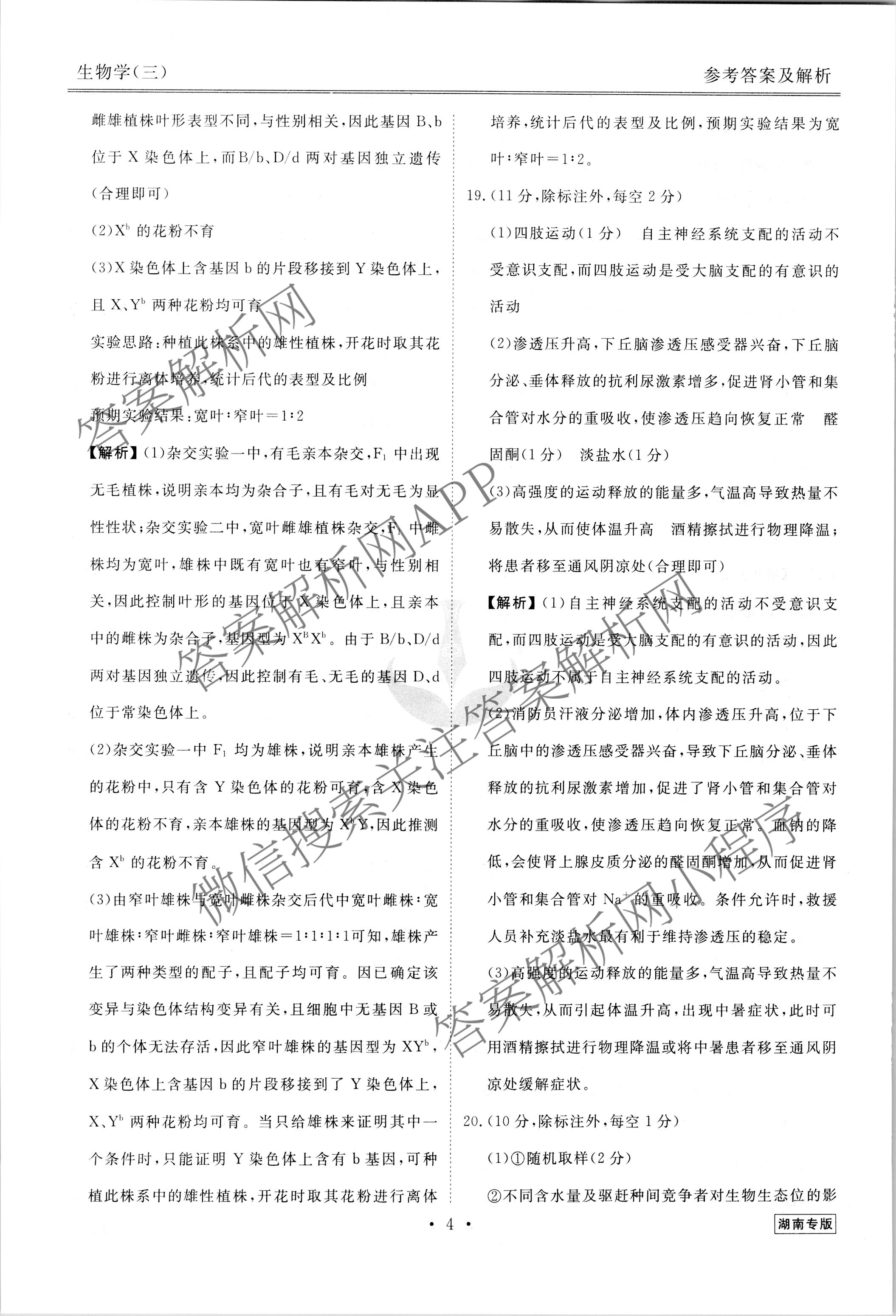 2023届(衡水金卷先享题) 调研卷 生物(湖南专版)(三)3答案
