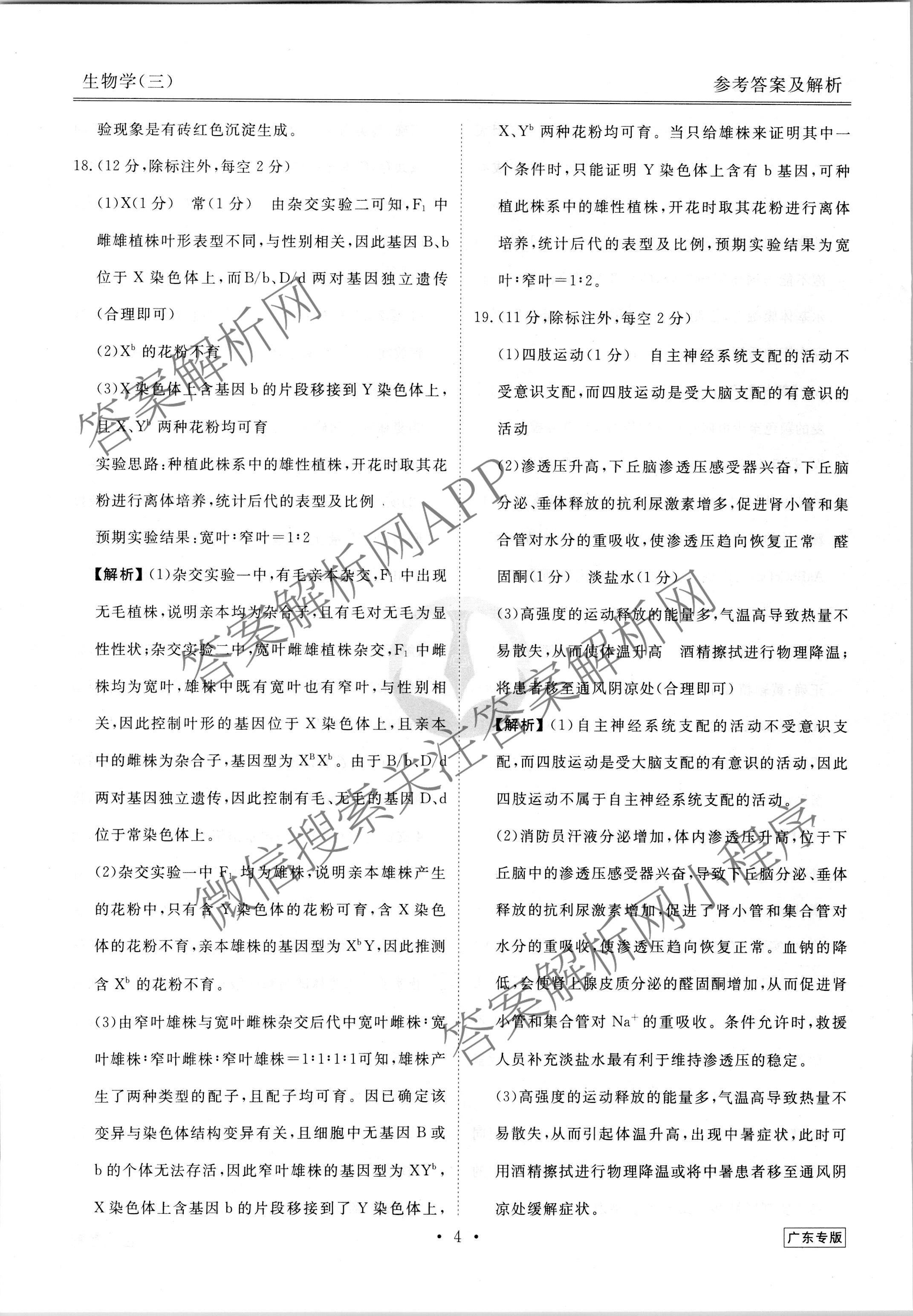 [高三][衡水金卷先享题] 2023届调研卷 生物(广东专版)(三)3答案