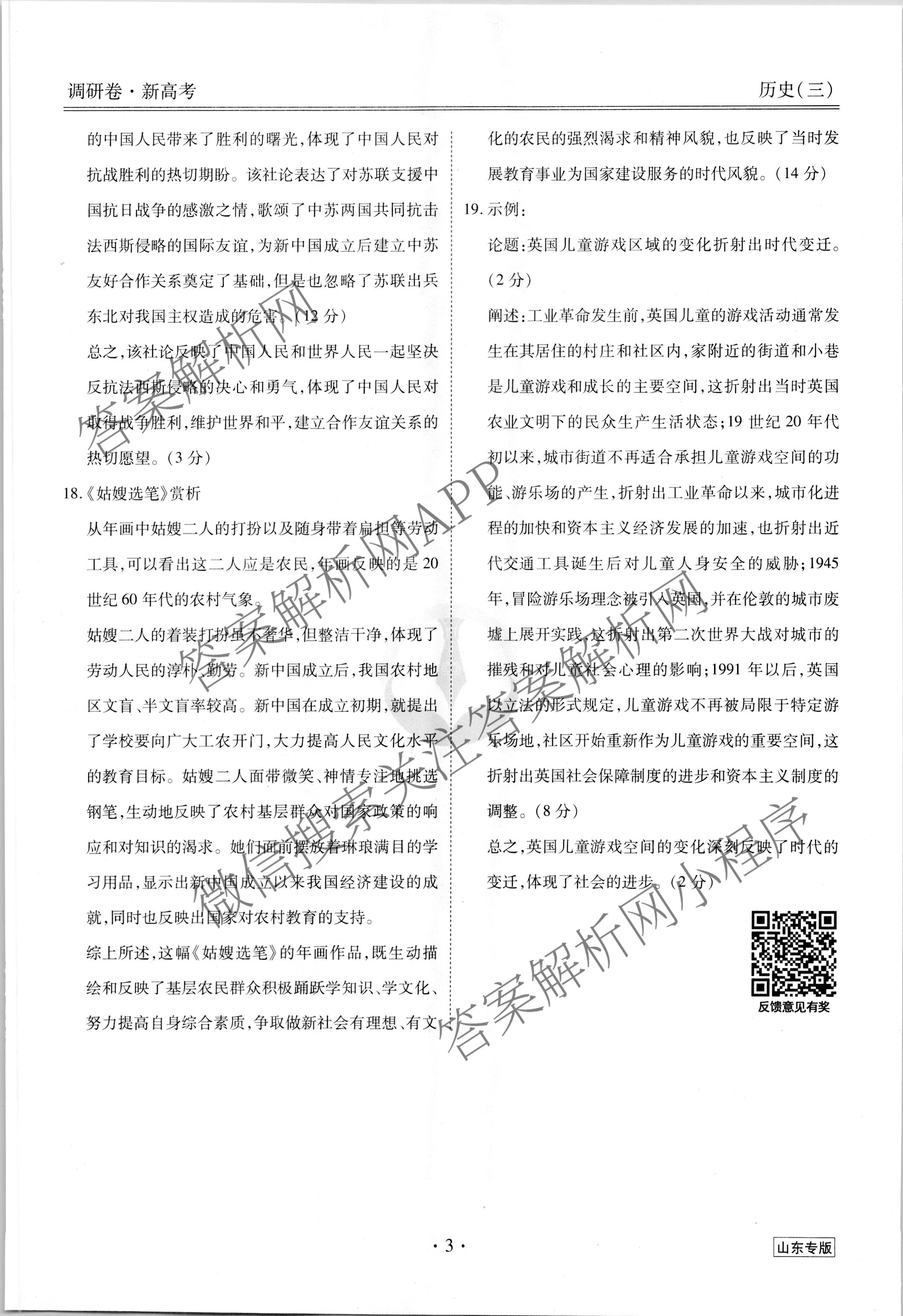 (高三)衡水金卷先享题 2023届调研卷 历史(山东专版)(三)3答案