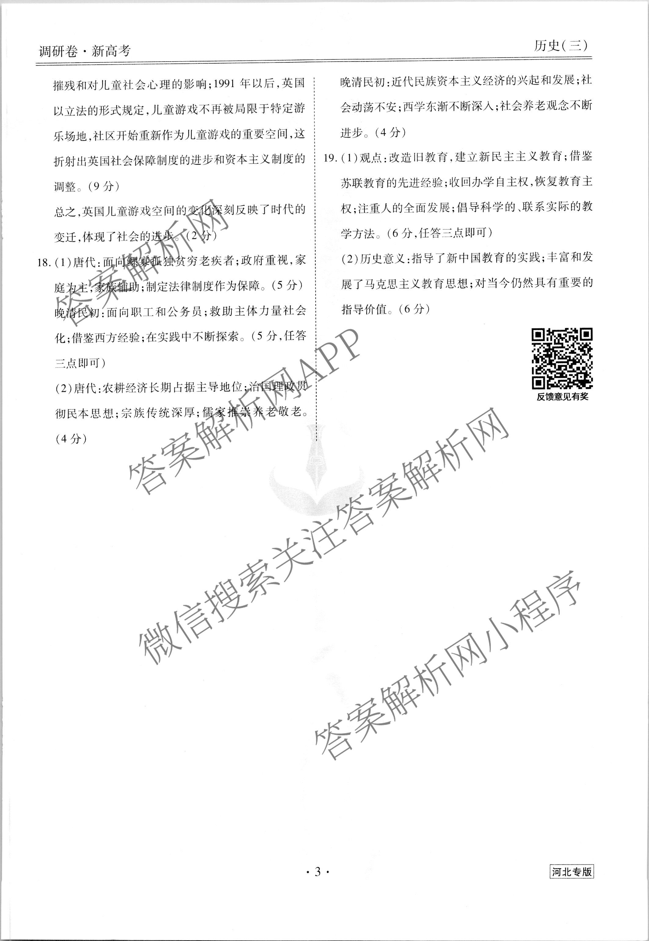 (高三)[衡水金卷先享题] 2023届调研卷 历史(河北专版)(三)3答案