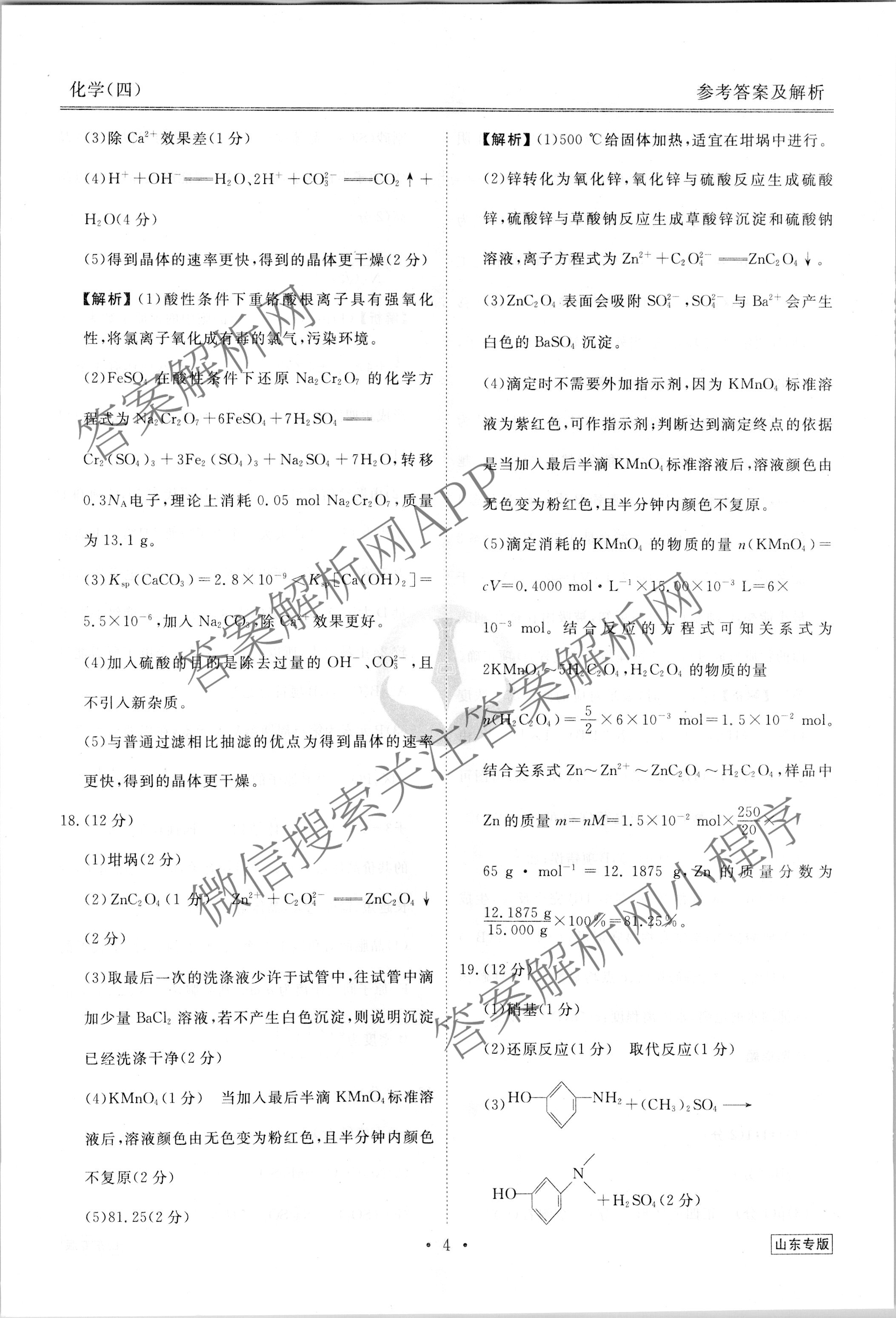 (衡水金卷先享题) 2023届调研卷 化学(山东专版)(四)4答案