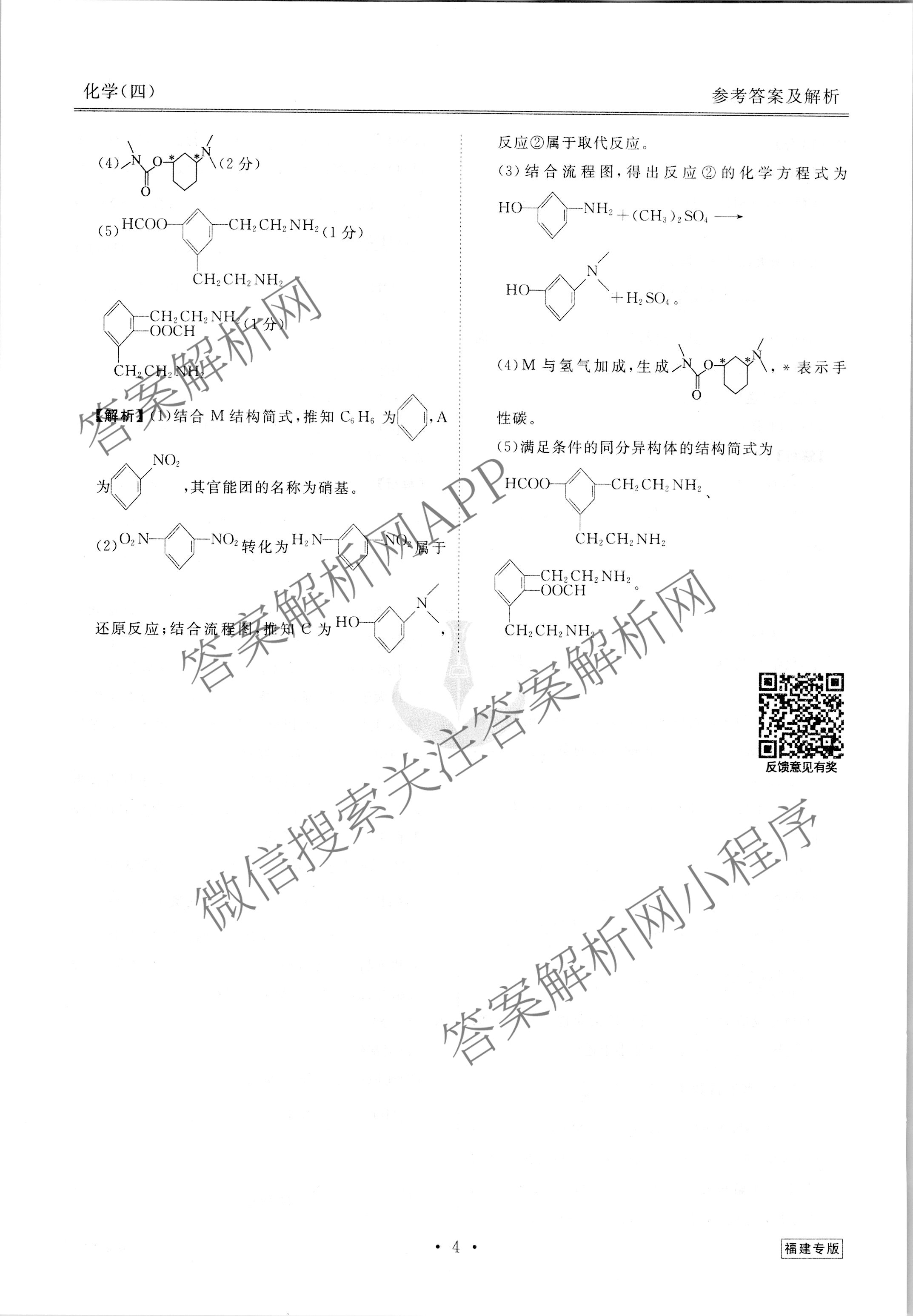 2023届[高三][衡水金卷先享题]调研卷 化学(福建专版)(四)4答案