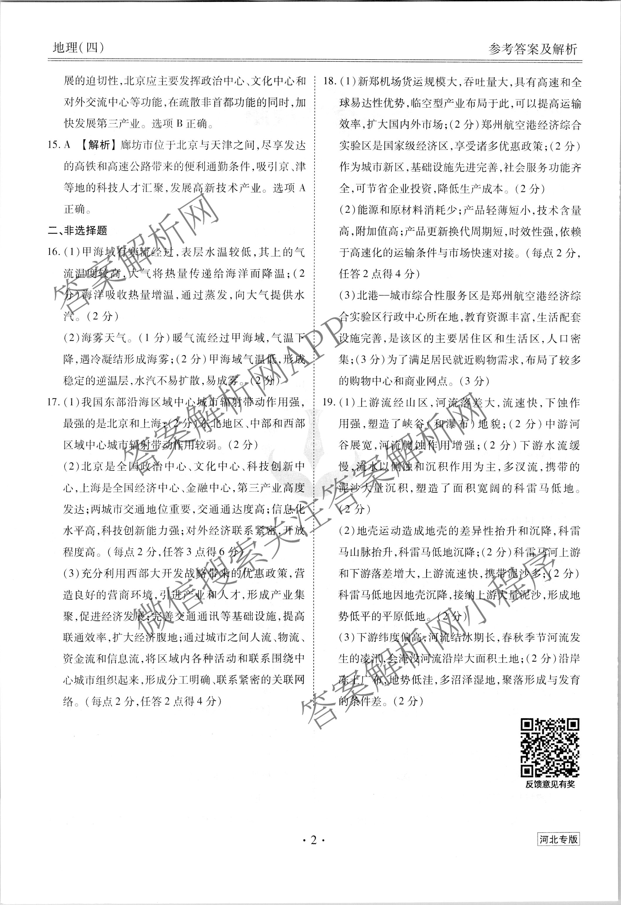 2023届(高三)衡水金卷先享题 调研卷 地理(河北专版)(四)4答案