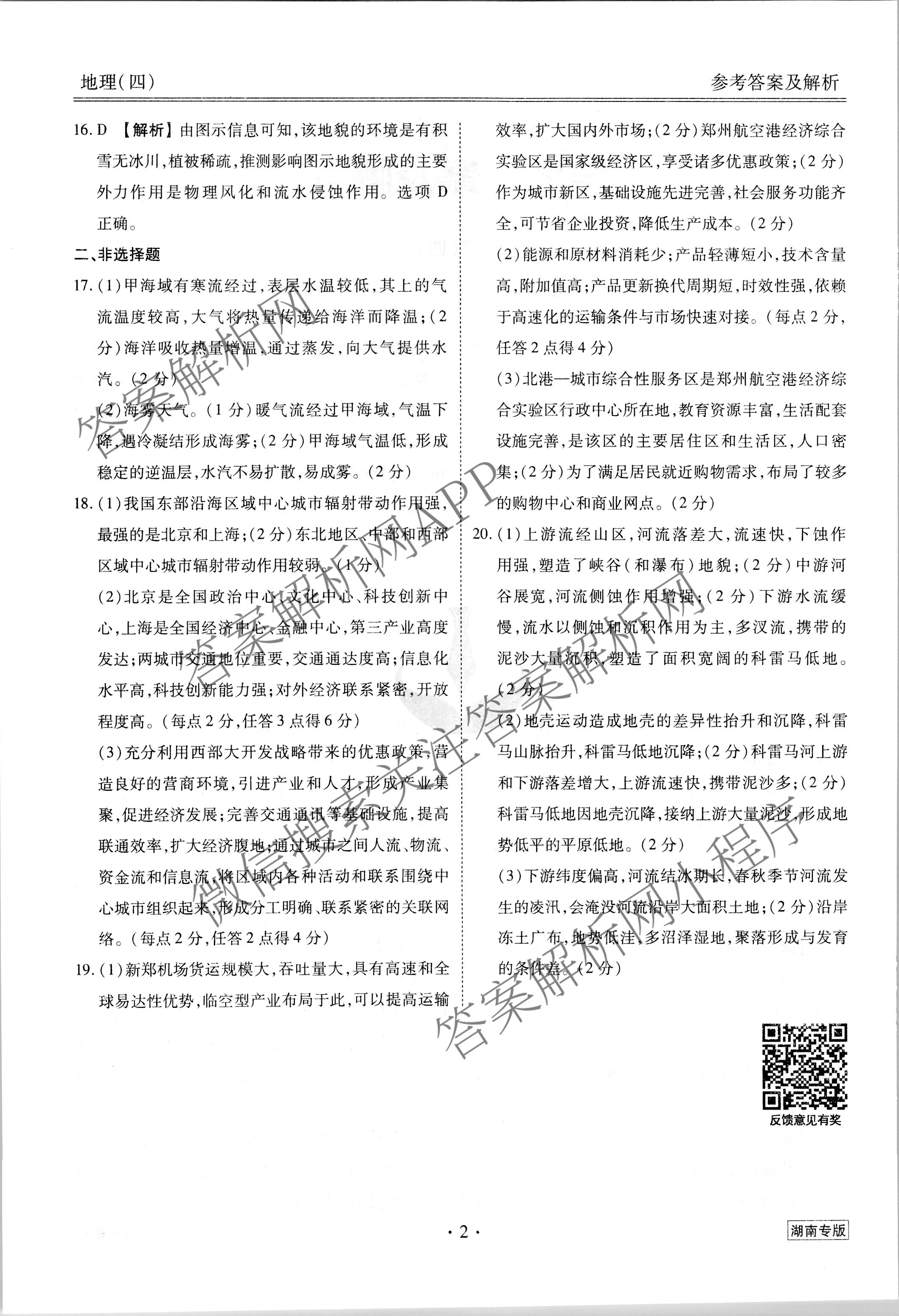 2023届高三(衡水金卷先享题) 调研卷 地理(湖南专版)(四)4答案