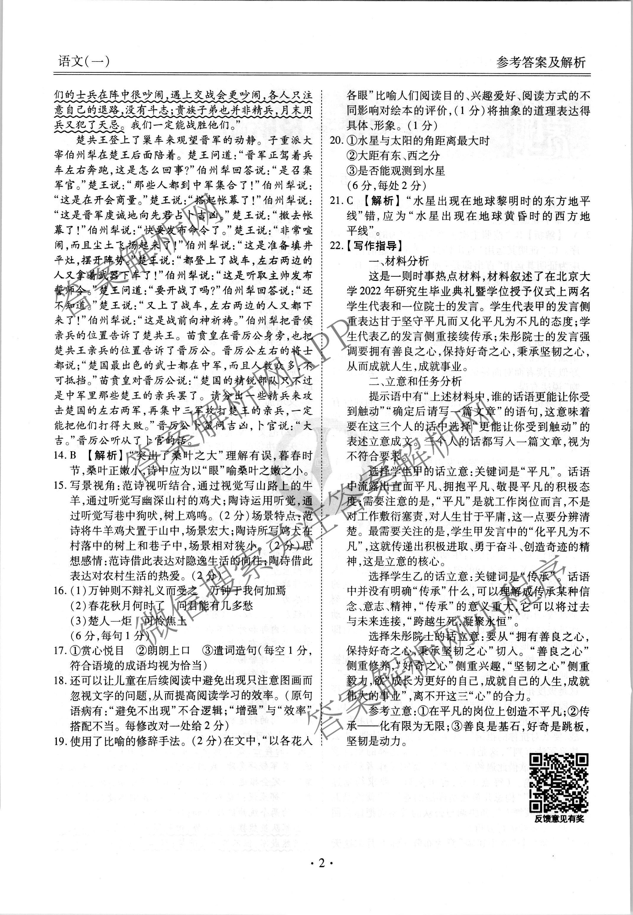 [高三]2023届[衡水金卷先享题] 分科综合卷 全国甲卷 语文(一)1答案