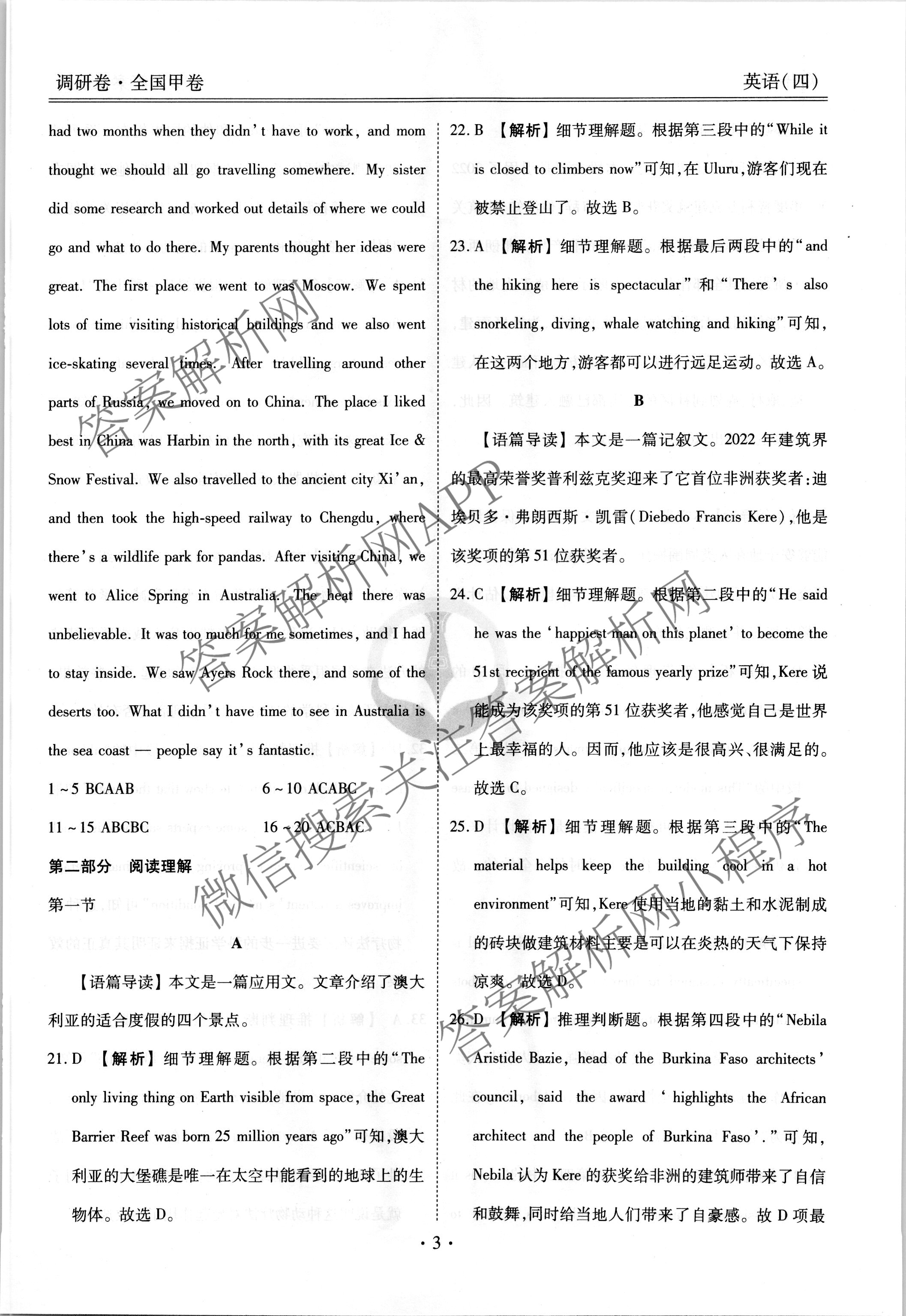 2023届(衡水金卷先享题) 调研卷 英语(全国甲卷)(四)4答案