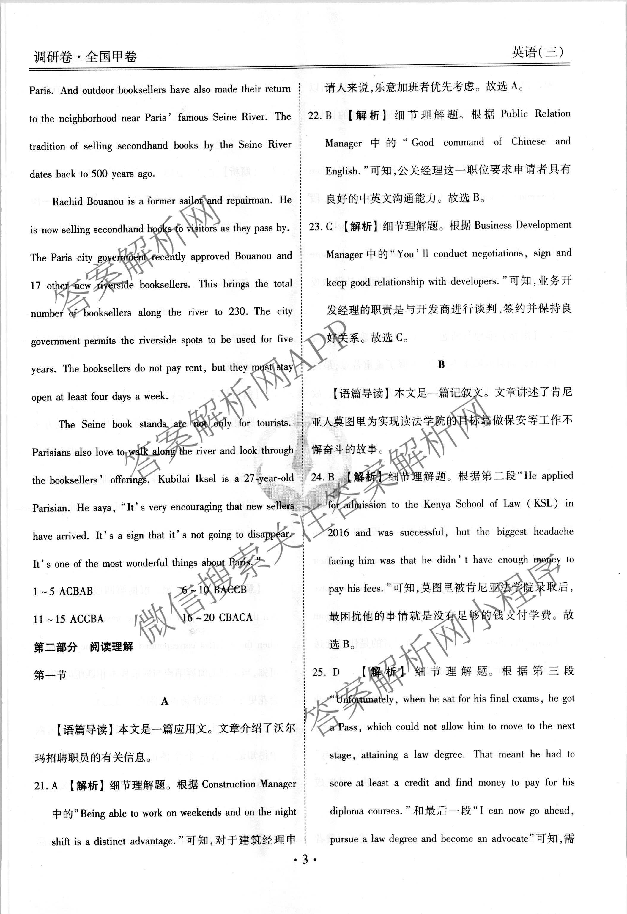(高三)(衡水金卷先享题) 2023届调研卷 英语(全国甲卷)(三)3答案