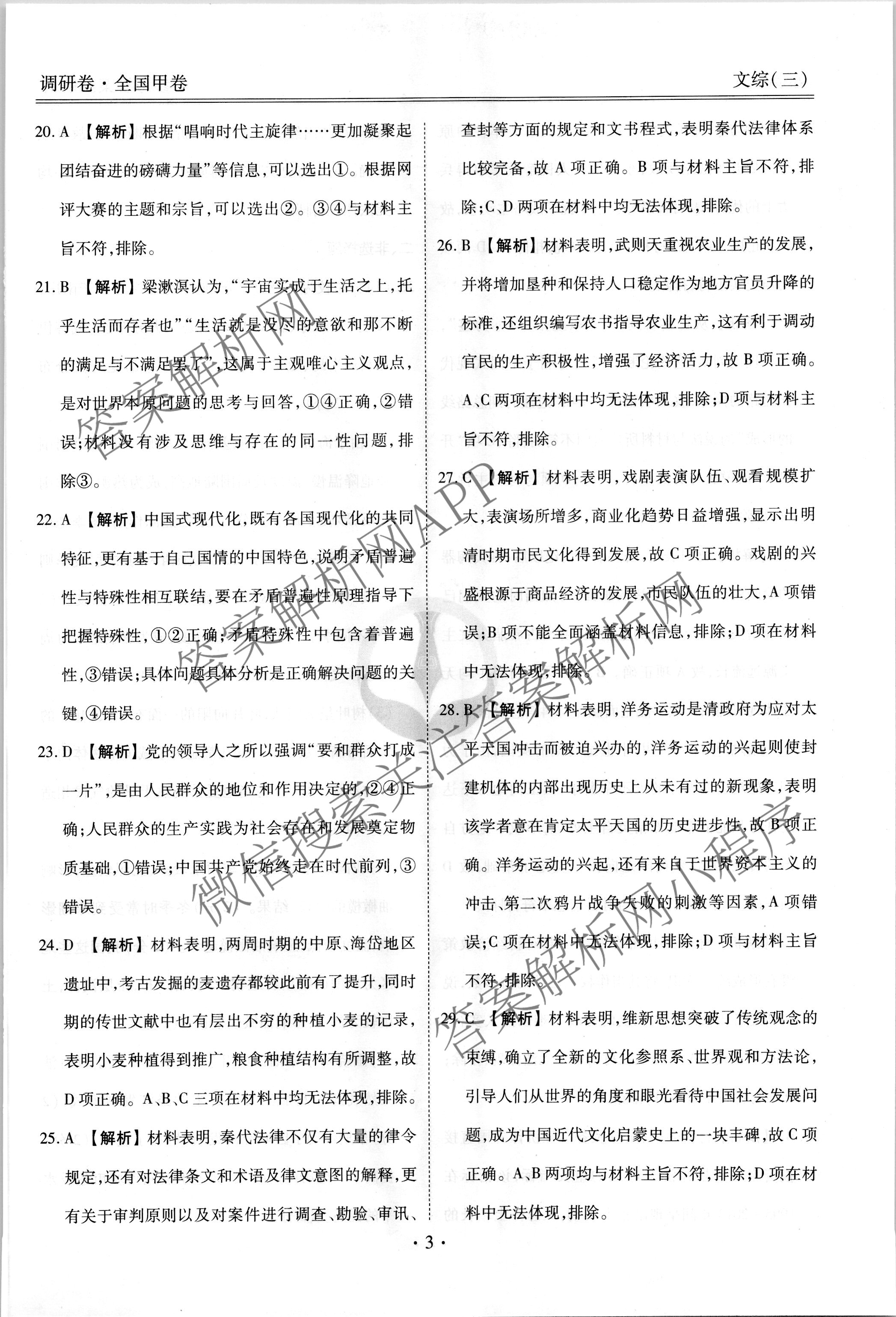 2023届高三[衡水金卷先享题] 调研卷 文综(全国甲卷)(三)3答案