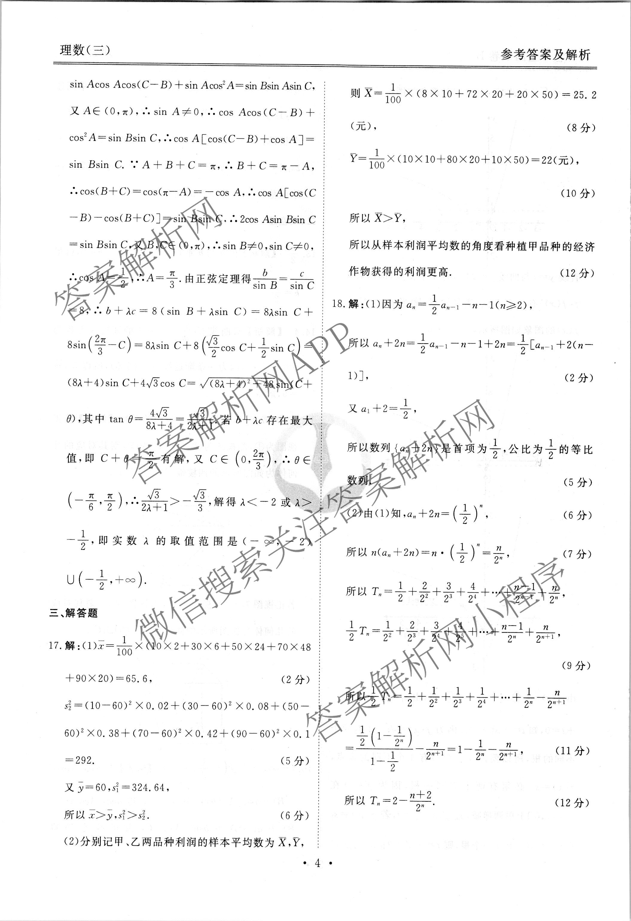2023届(衡水金卷先享题) 调研卷 理数(全国甲卷B)(三)3答案