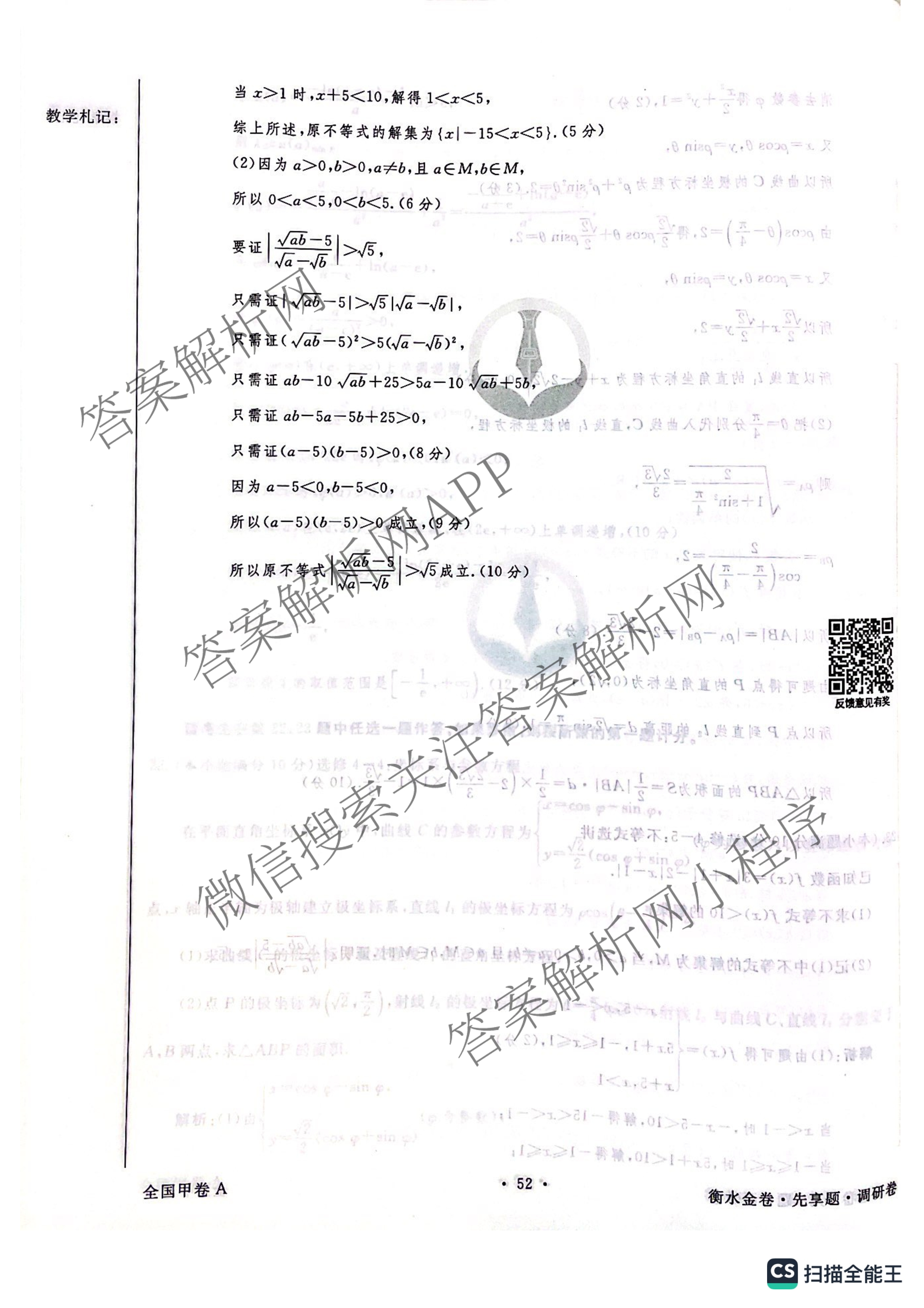 - [高三][衡水金卷先享题] 2023届调研卷 文数(全国甲卷A)(三)3答案