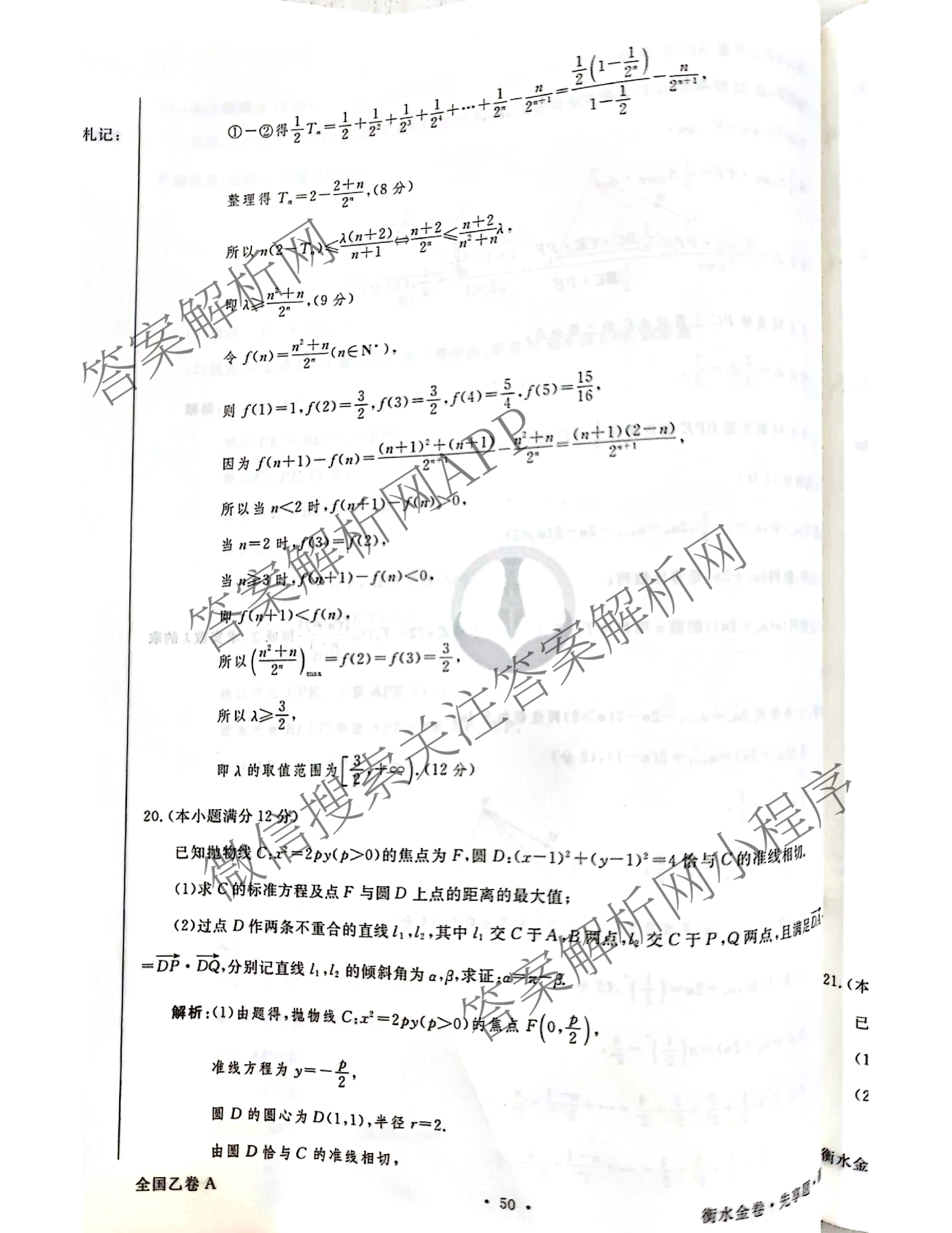 (高三)衡水金卷先享题 2023届调研卷 文数(全国乙卷A)(三)3答案