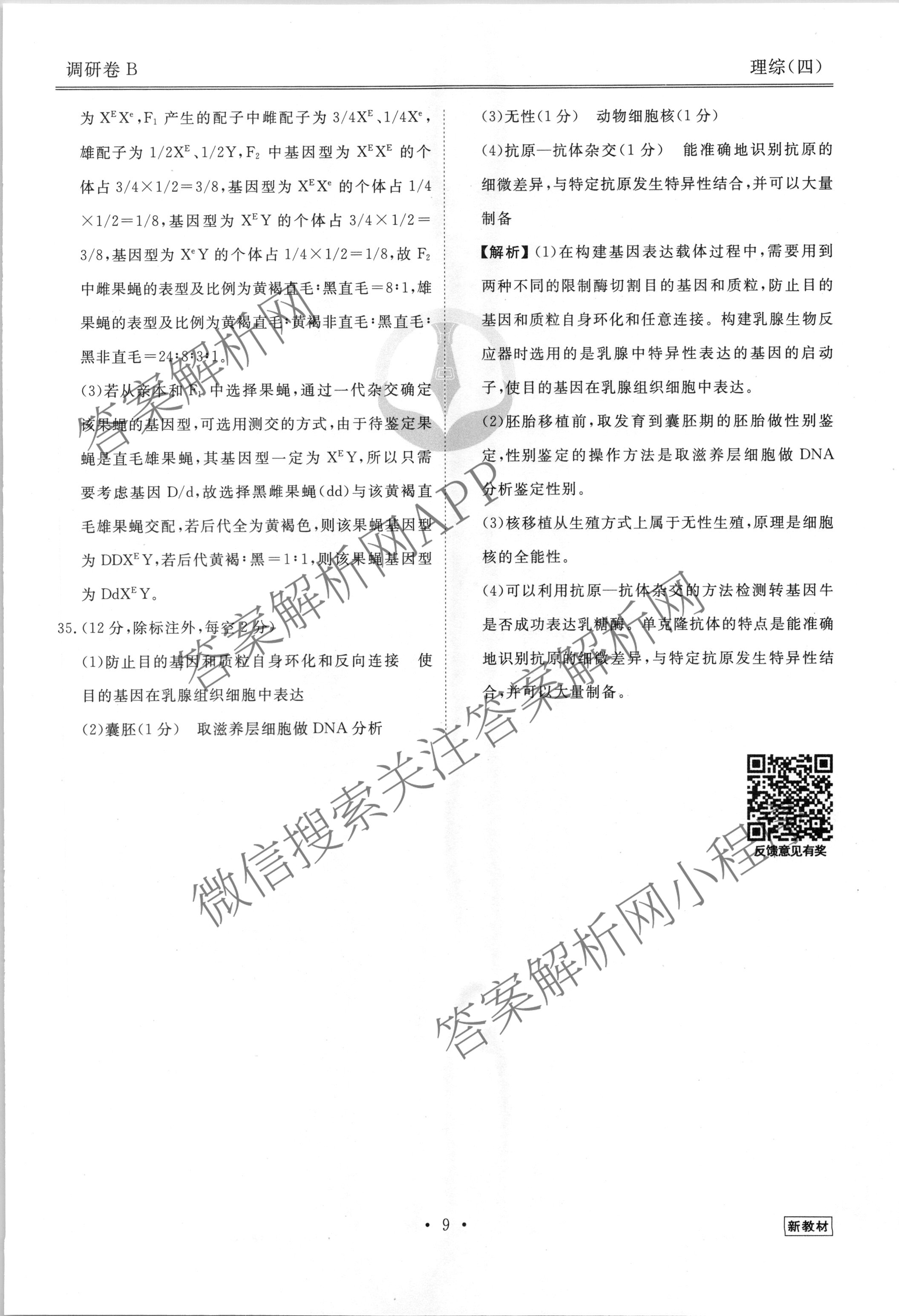 (衡水金卷先享题) 2023届调研卷 理综(新教材B)(四)4答案