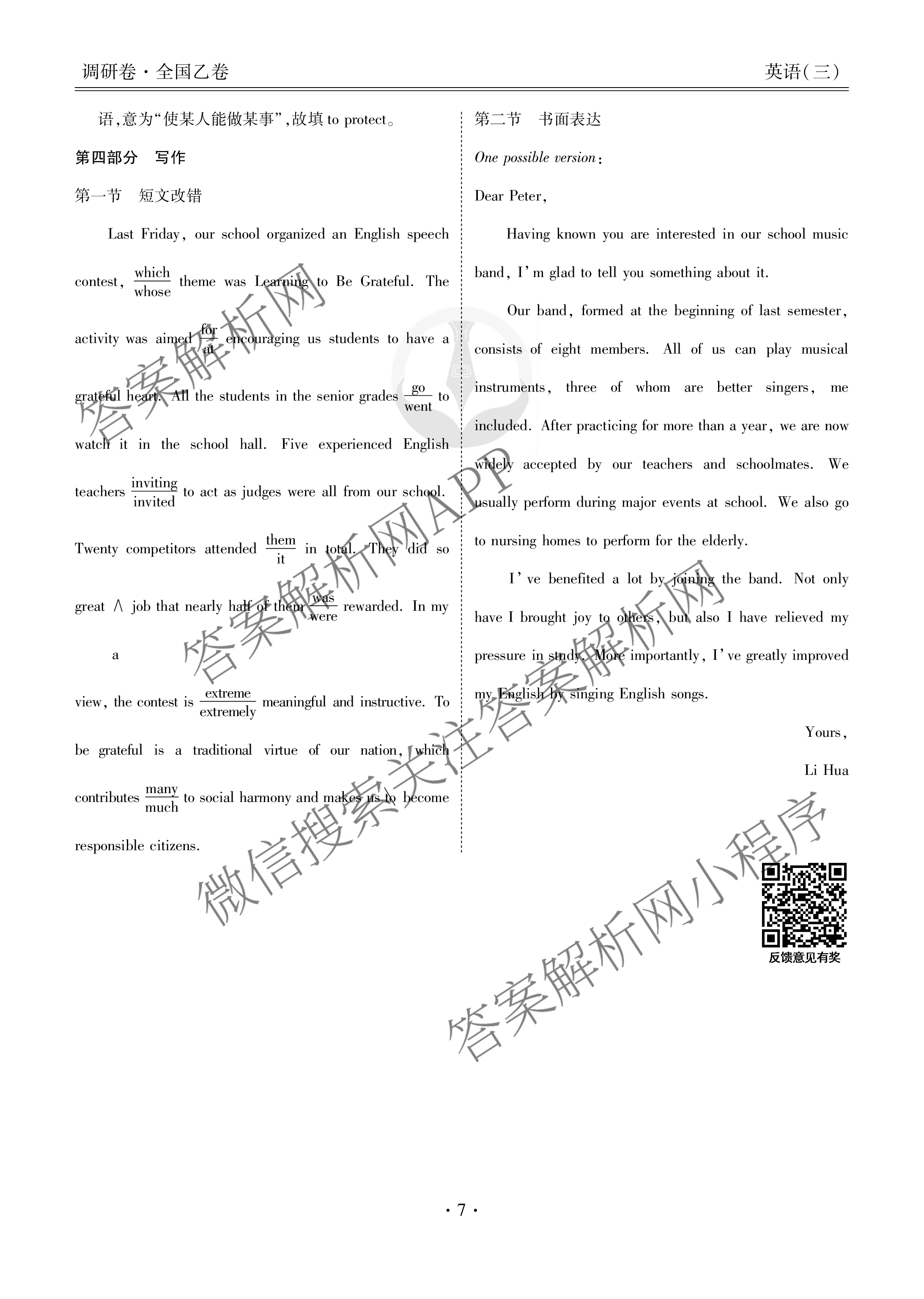 2023届(高三)衡水金卷先享题 调研卷 英语(全国乙卷)(三)3答案