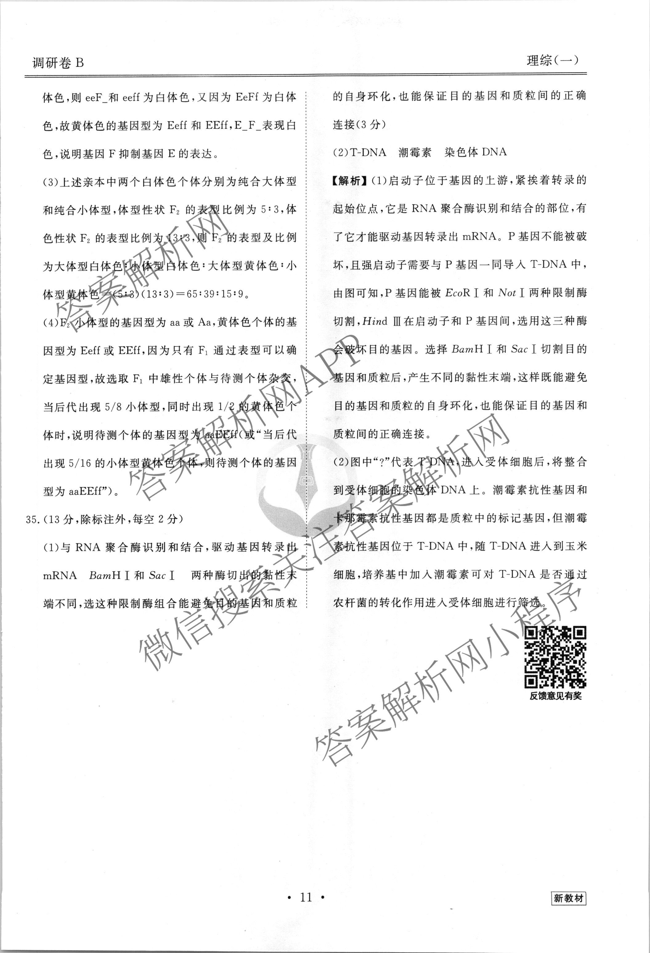 衡水金卷先享题 2023届调研卷 理综(新教材B)(一)1答案