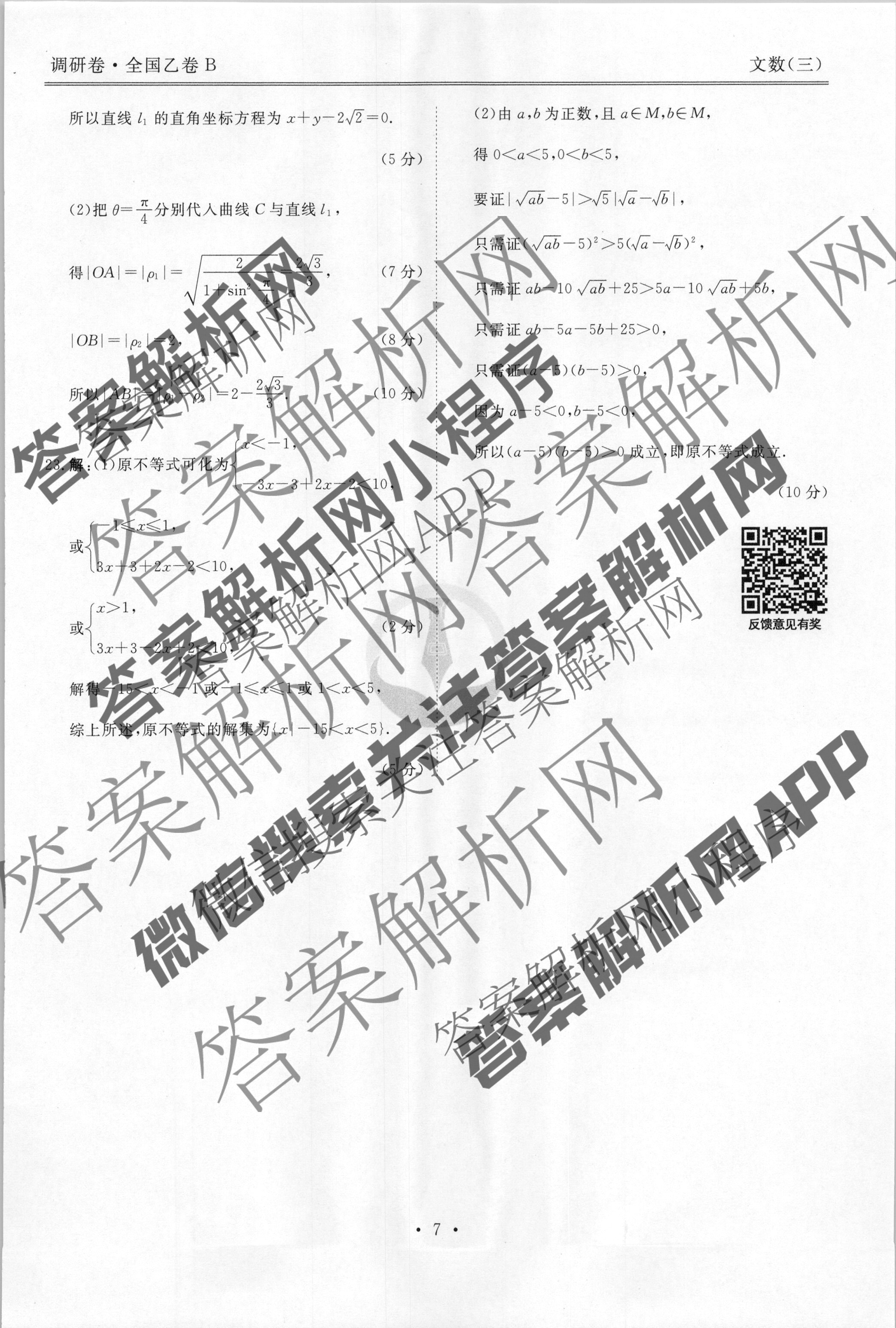 [高三][衡水金卷先享题] 2023届调研卷 文数(全国乙卷B)(三)3答案