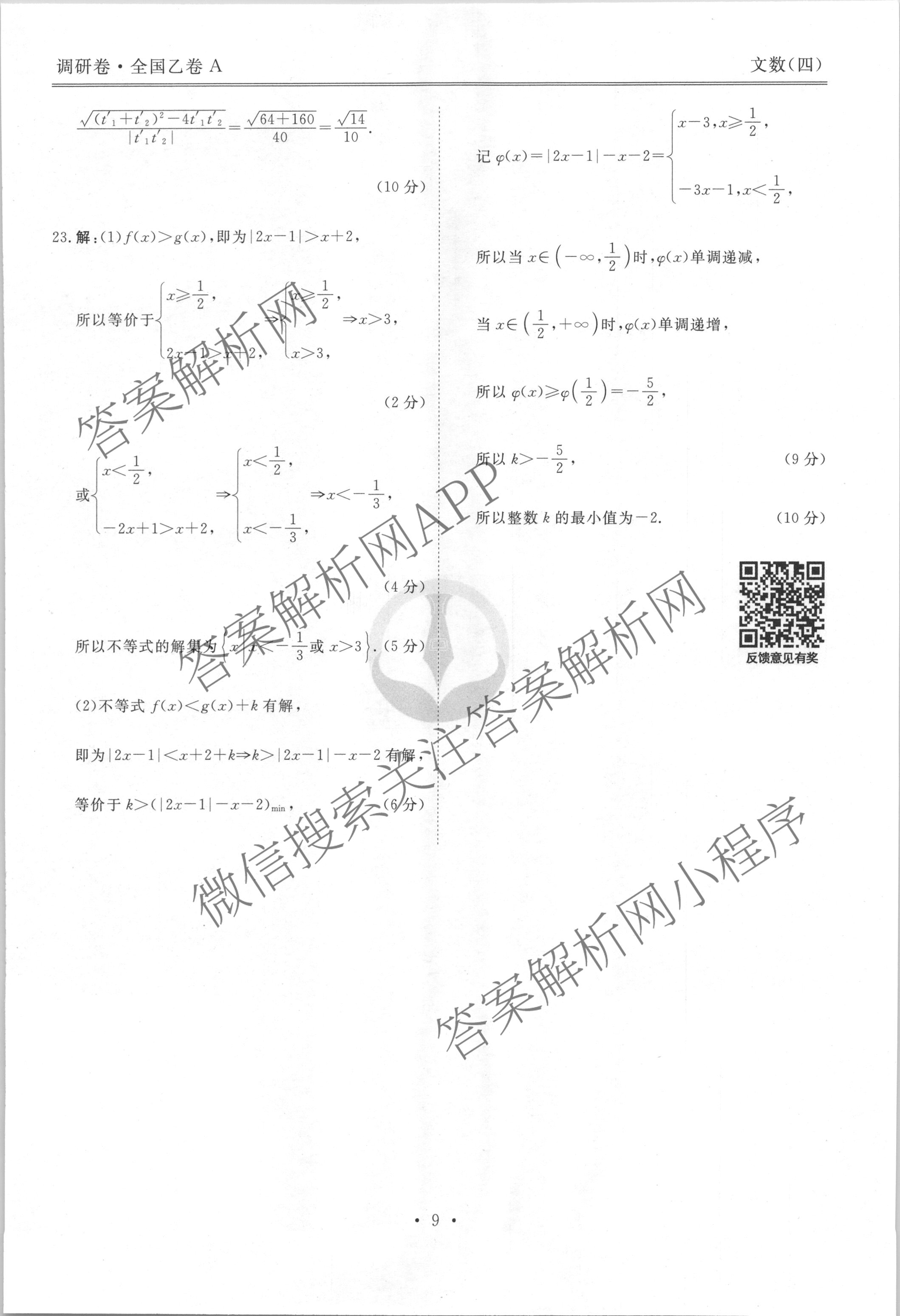 - 衡水金卷先享题 2023届调研卷 文数(全国乙卷A)(四)4答案