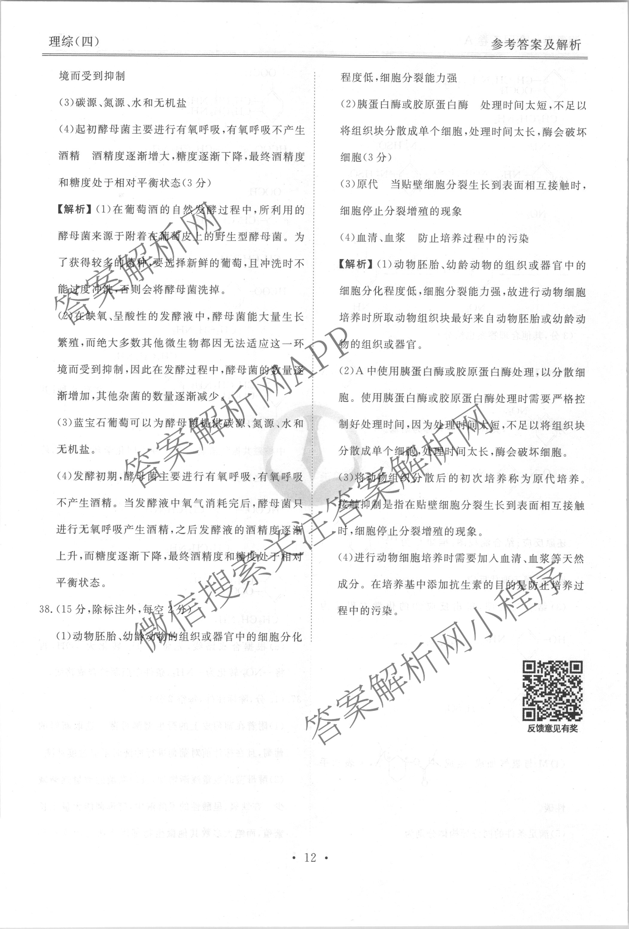 衡水金卷先享题 2023届调研卷 理综(全国乙卷A)(四)4答案