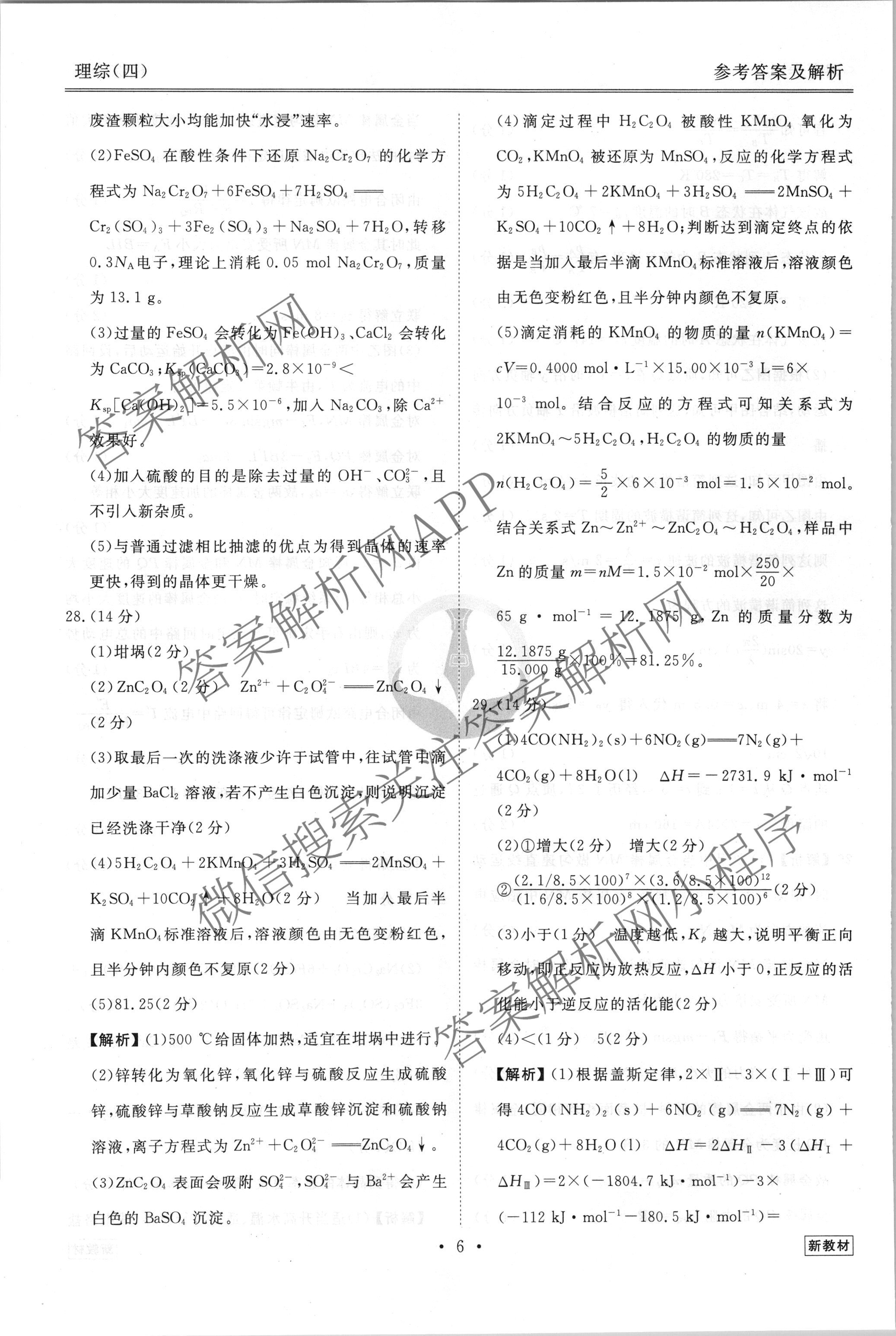 衡水金卷先享题 2023届调研卷 理综(新教材A)(四)4答案