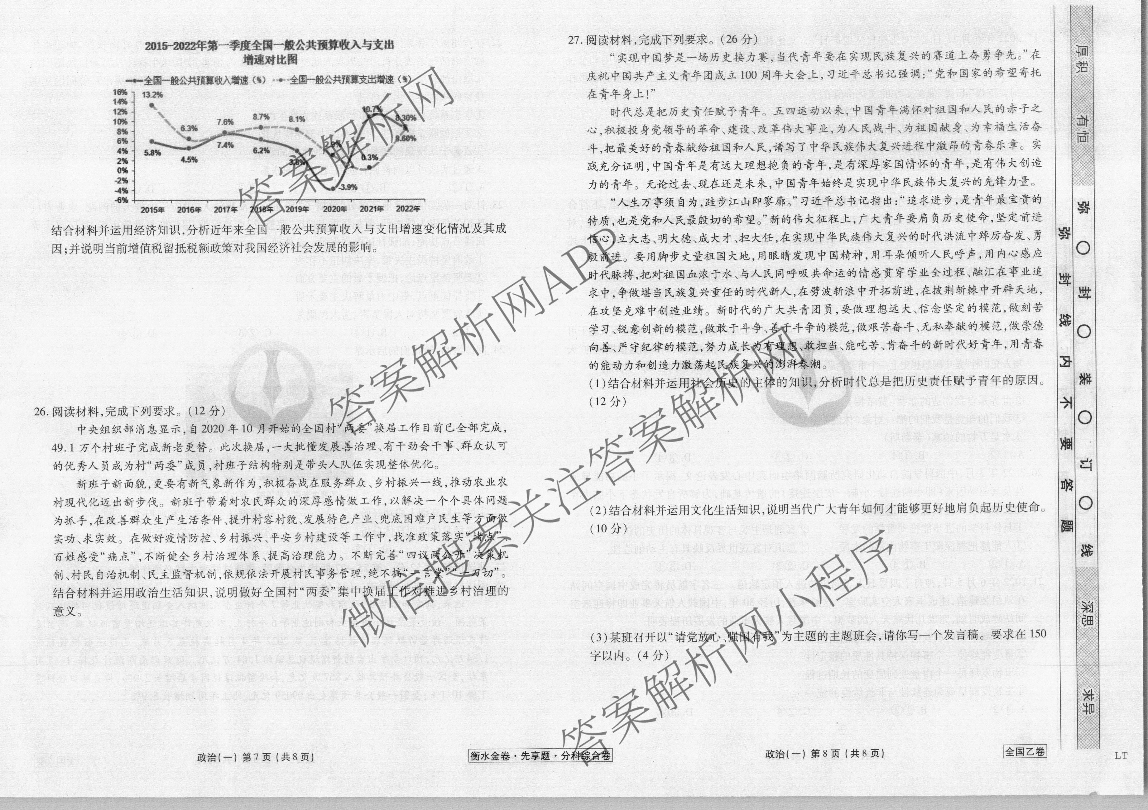 2023届[衡水金卷先享题] 分科综合卷 全国乙卷 政治(一)1试题