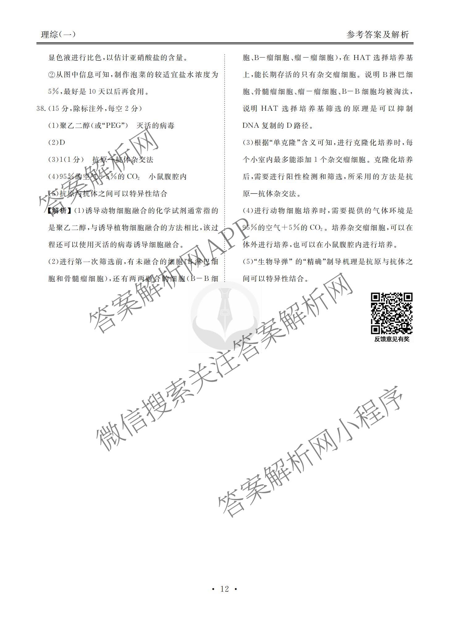 - (高三)2023届衡水金卷先享题 分科综合卷 全国乙卷B 理综(一)1答案
