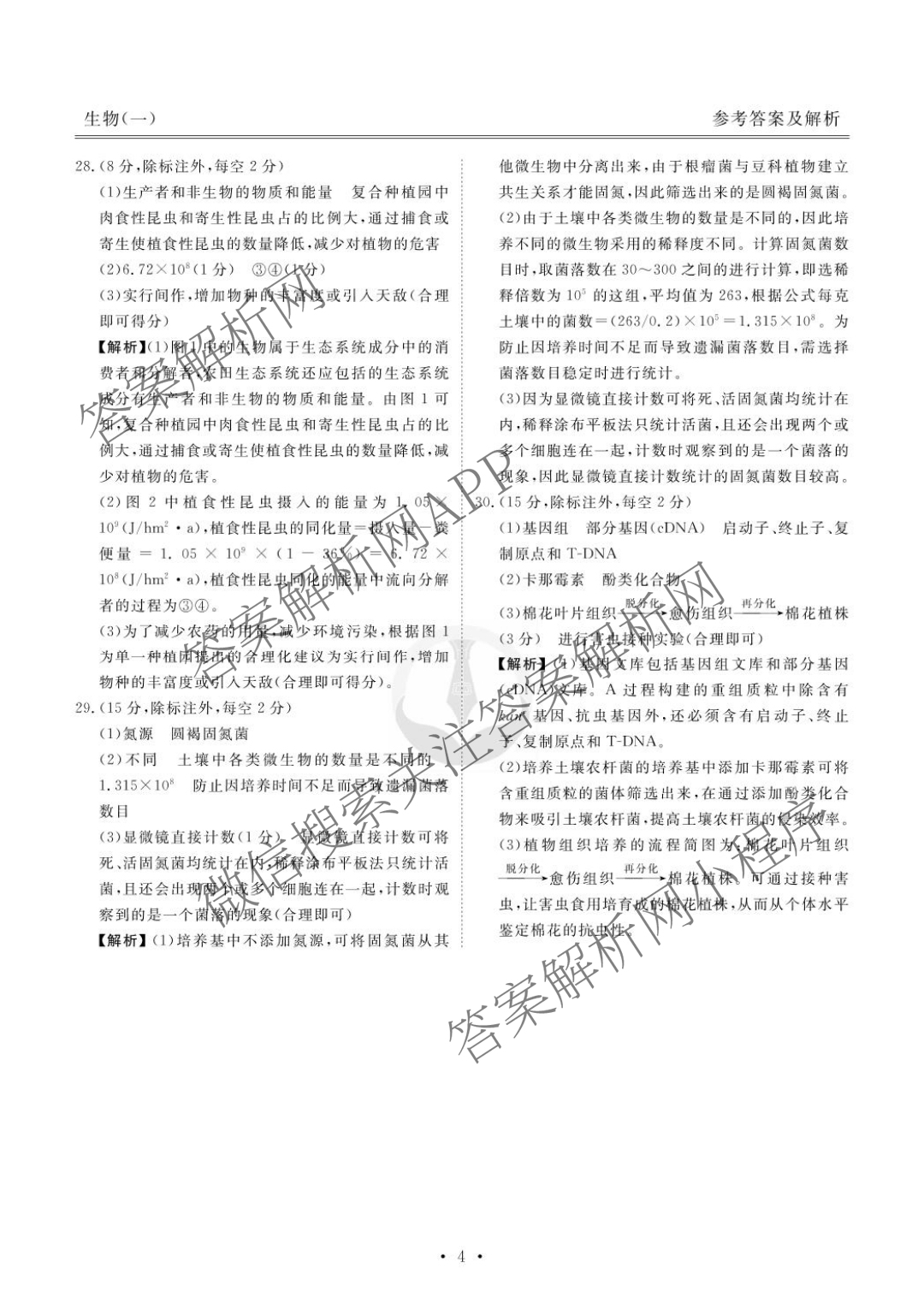 - 2022届[高三]衡水金卷先享题 分科综合卷 全国甲卷A 生物(一)1答案