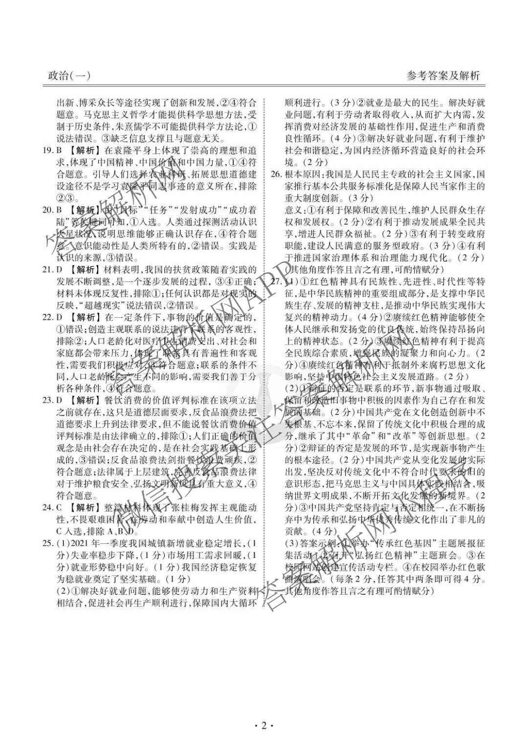 2022届(衡水金卷先享题) 分科综合卷 全国甲卷 政治(一)1答案