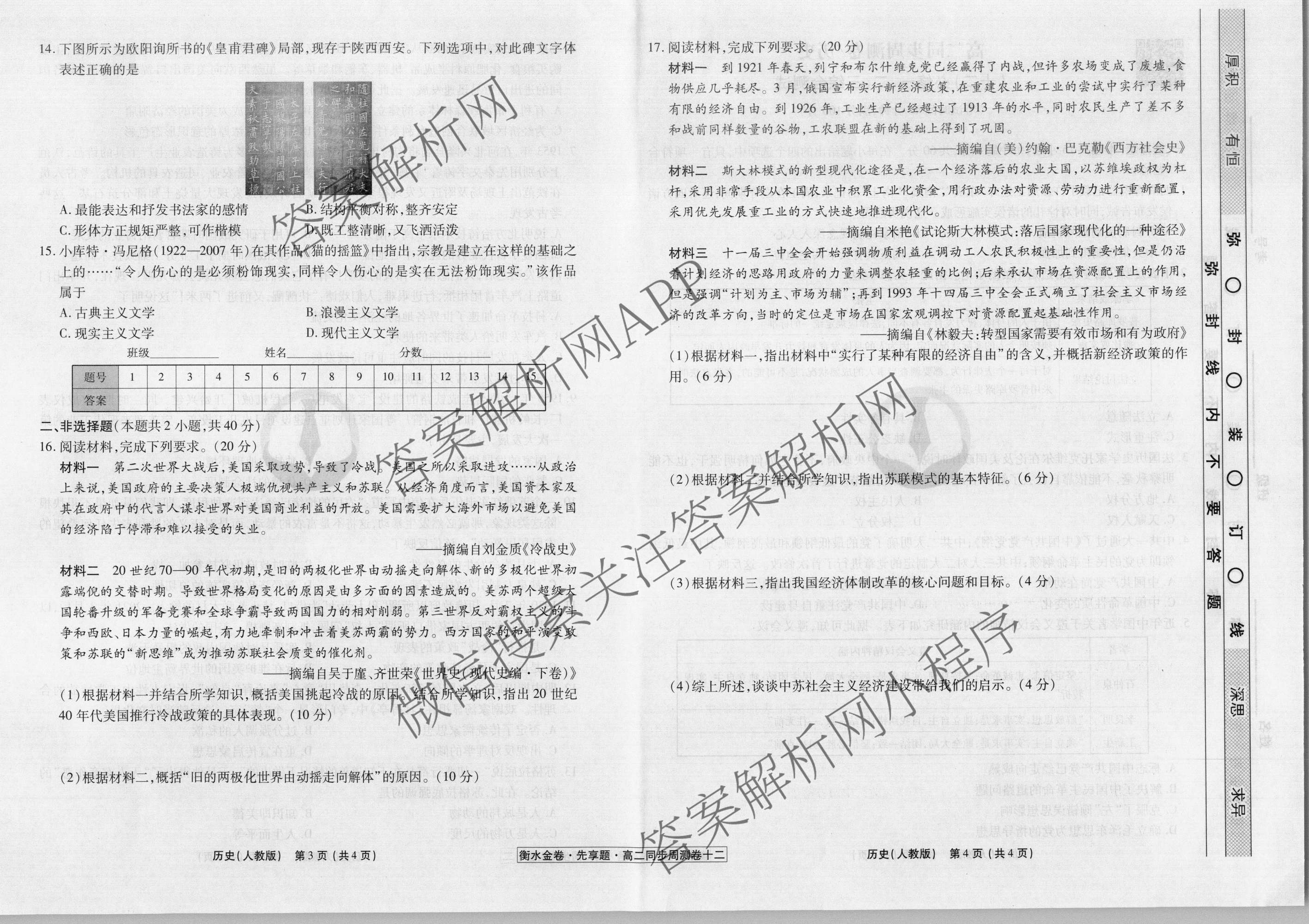 2022-2023衡水金卷先享题·高二同步周测卷·历史(人教版)(十二)12试题,目前衡水金卷先享题答案网已经汇总了2022-2023衡水金卷先享题·高二同步周测卷·历史(人教版)(十二)12试题的各科答案和试卷,获取更多衡水金卷先享题答案解析,请在关注本站。