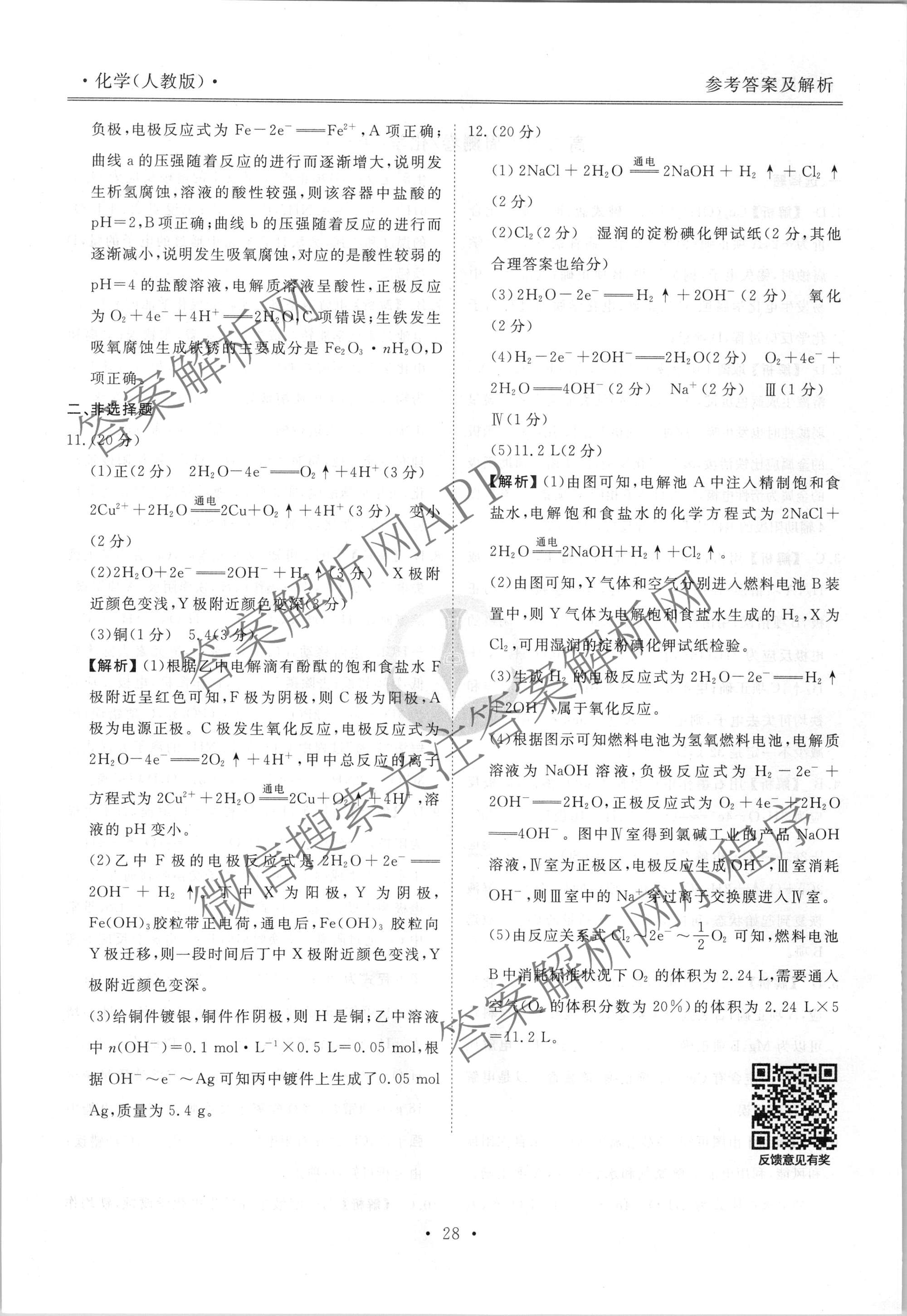 2022-2023衡水金卷先享题高二同步周测卷化学(人教版)(十一)11答案