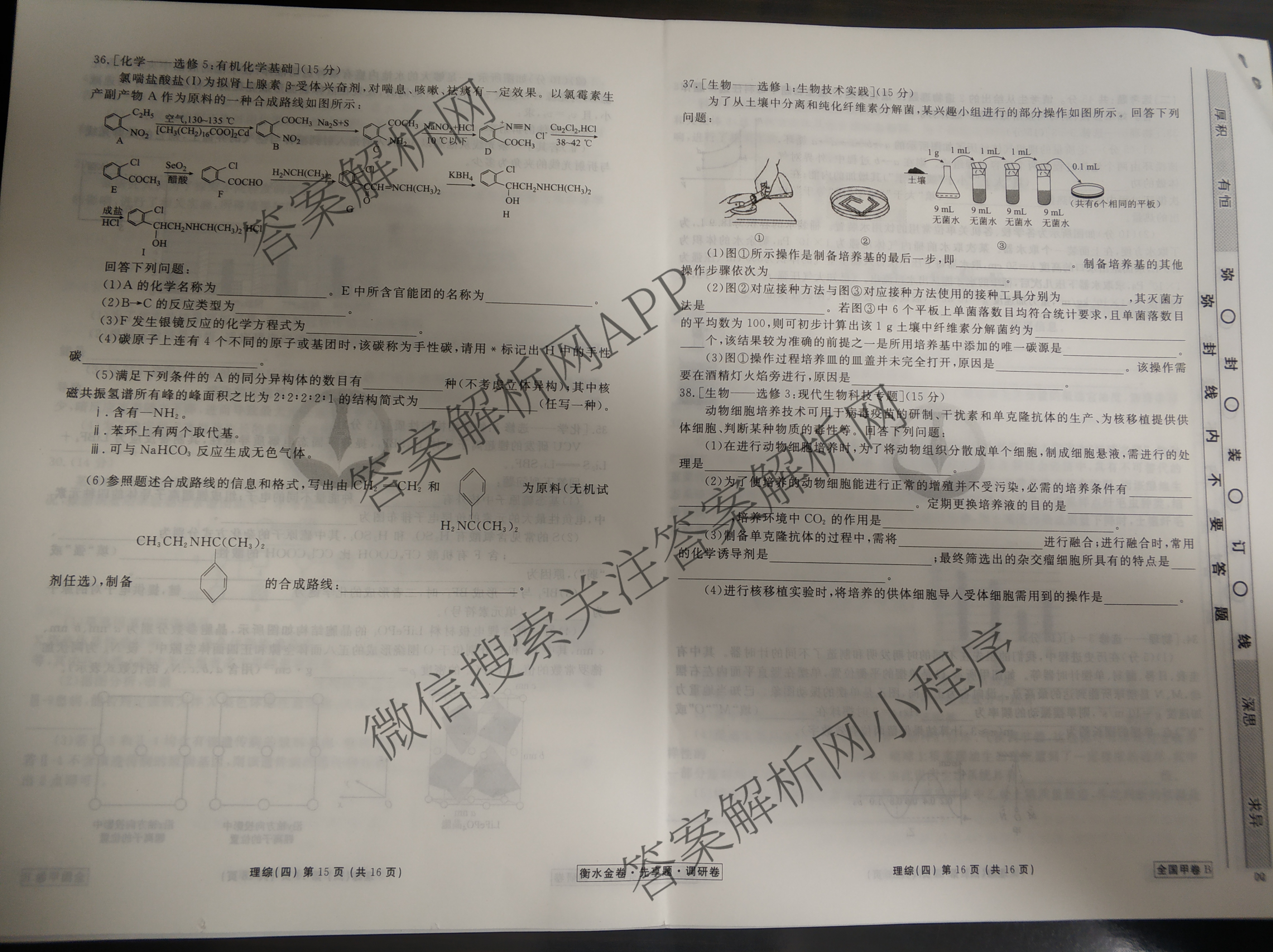 - [高三]2022届(衡水金卷先享题) 调研卷 全国乙卷A 理综(四)4答案