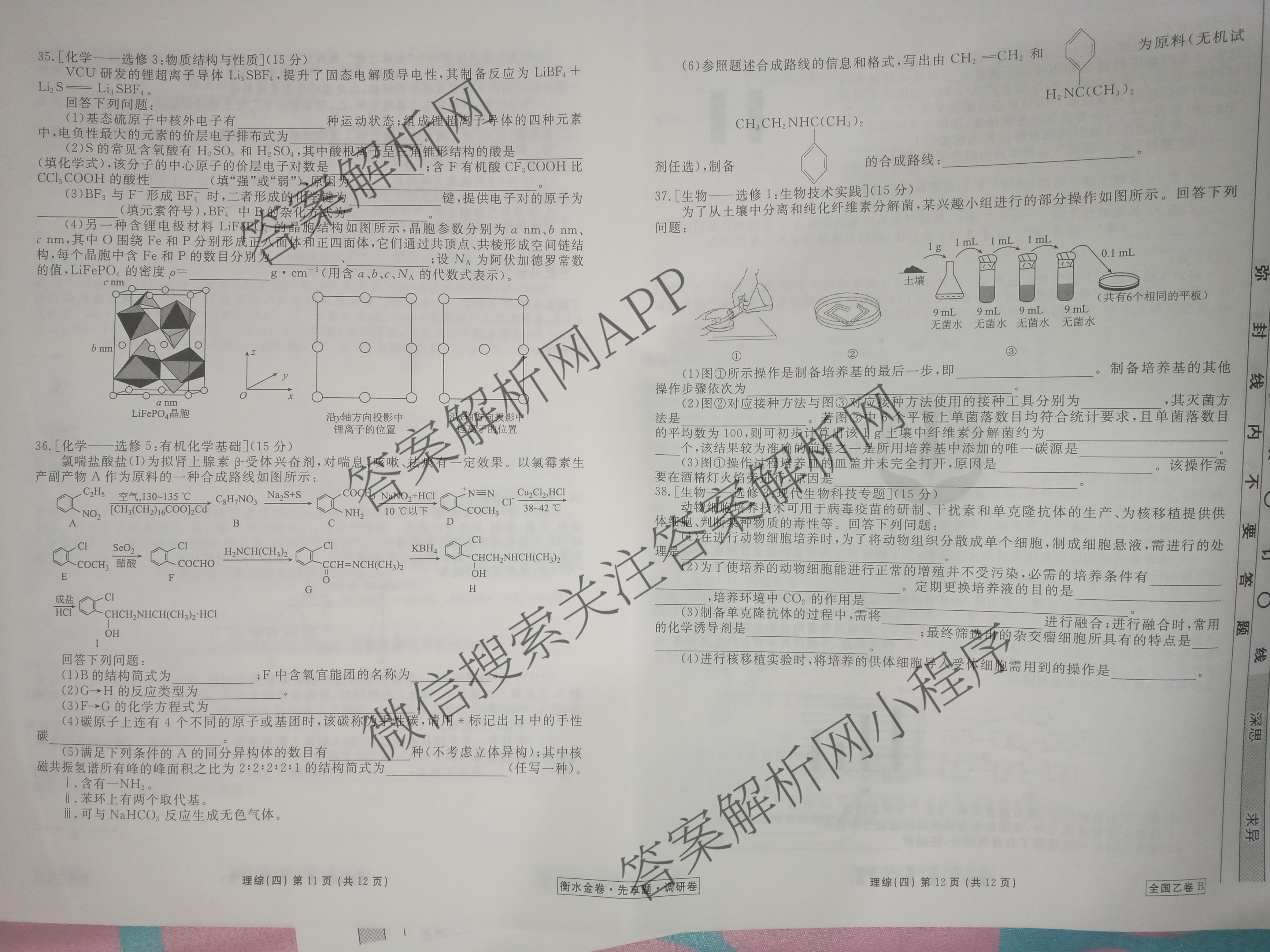 - [高三]2022届(衡水金卷先享题) 调研卷 全国乙卷A 理综(四)4答案