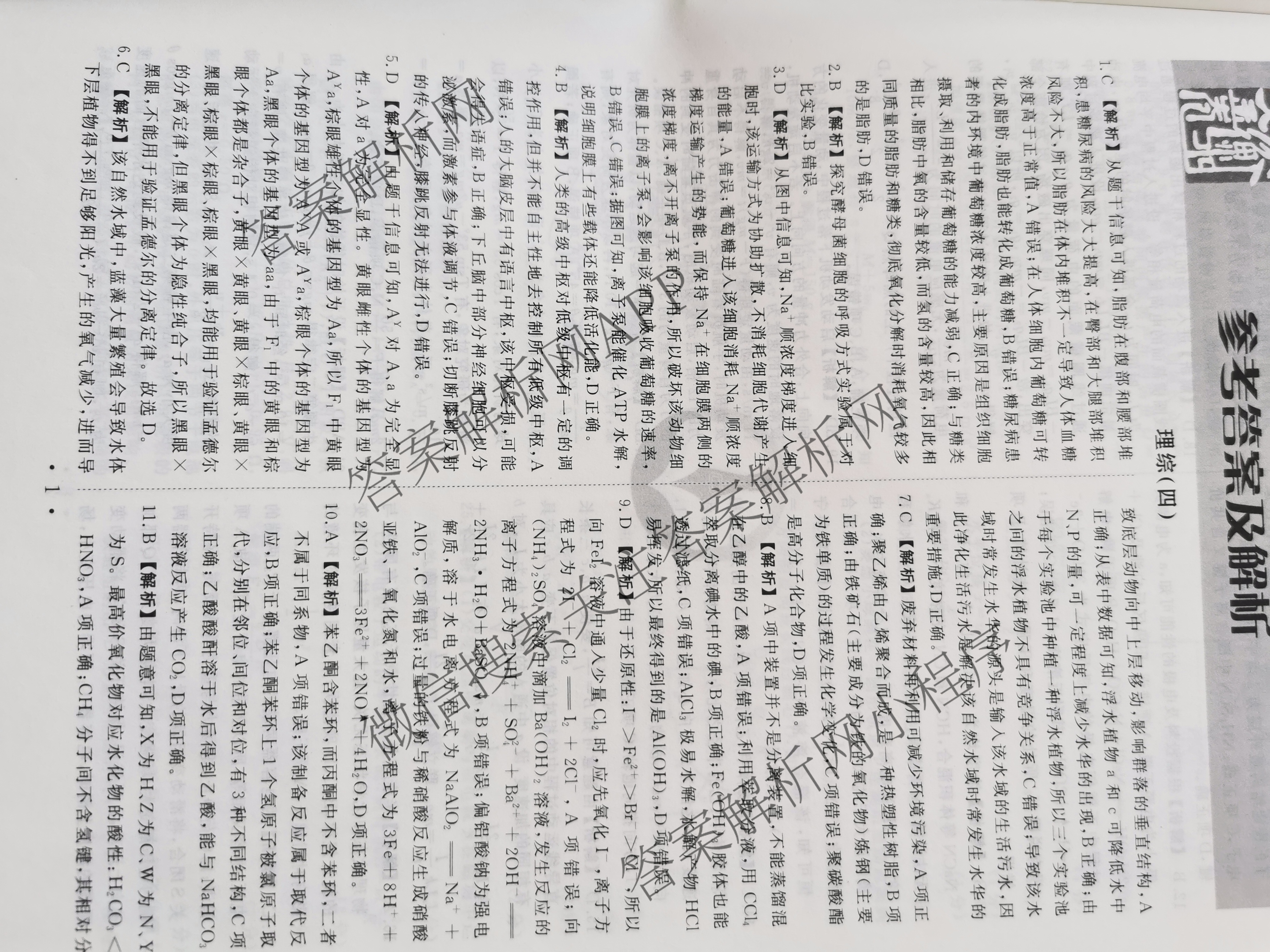 - [高三]2022届(衡水金卷先享题) 调研卷 全国乙卷A 理综(四)4答案