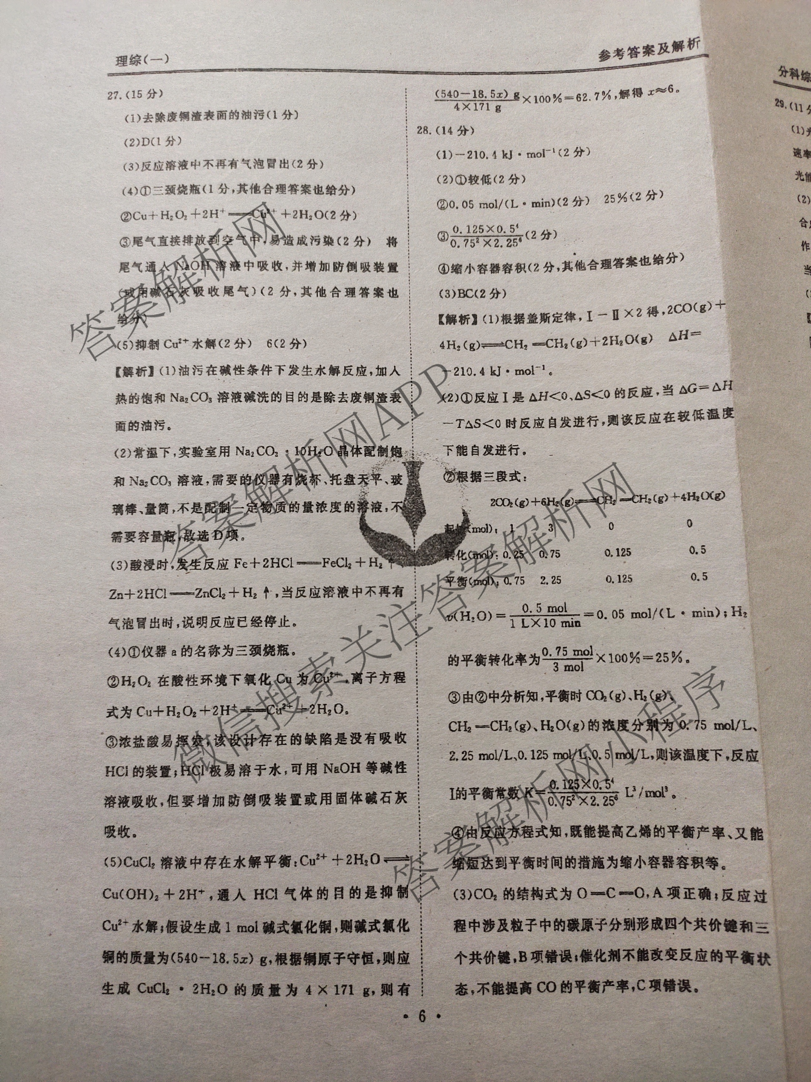 - 2022届[高三][衡水金卷先享题] 分科综合卷 全国乙卷A 化学(一)1答案