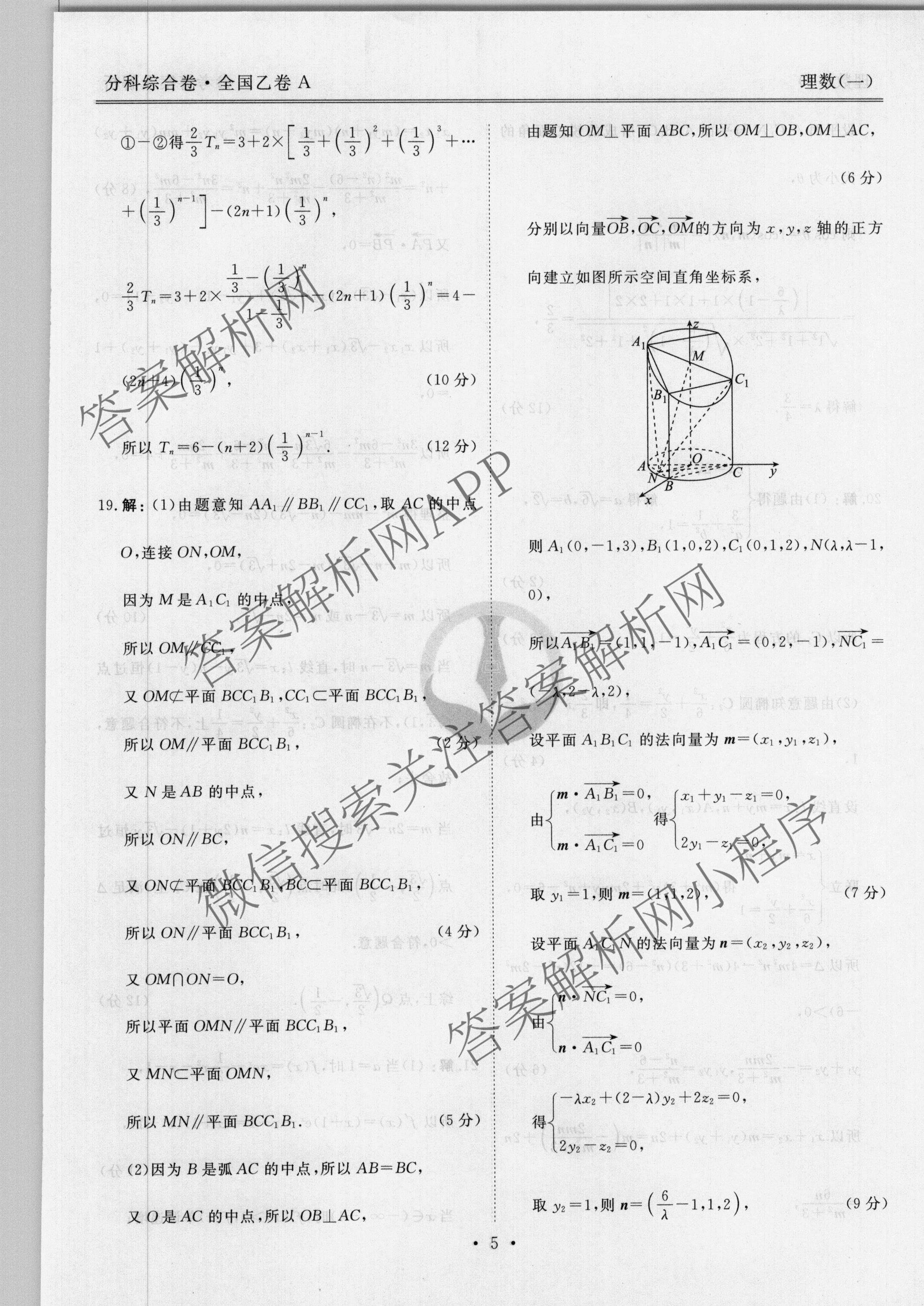 2022届[衡水金卷先享题] 分科综合卷 全国乙卷A 理数(一)1答案
