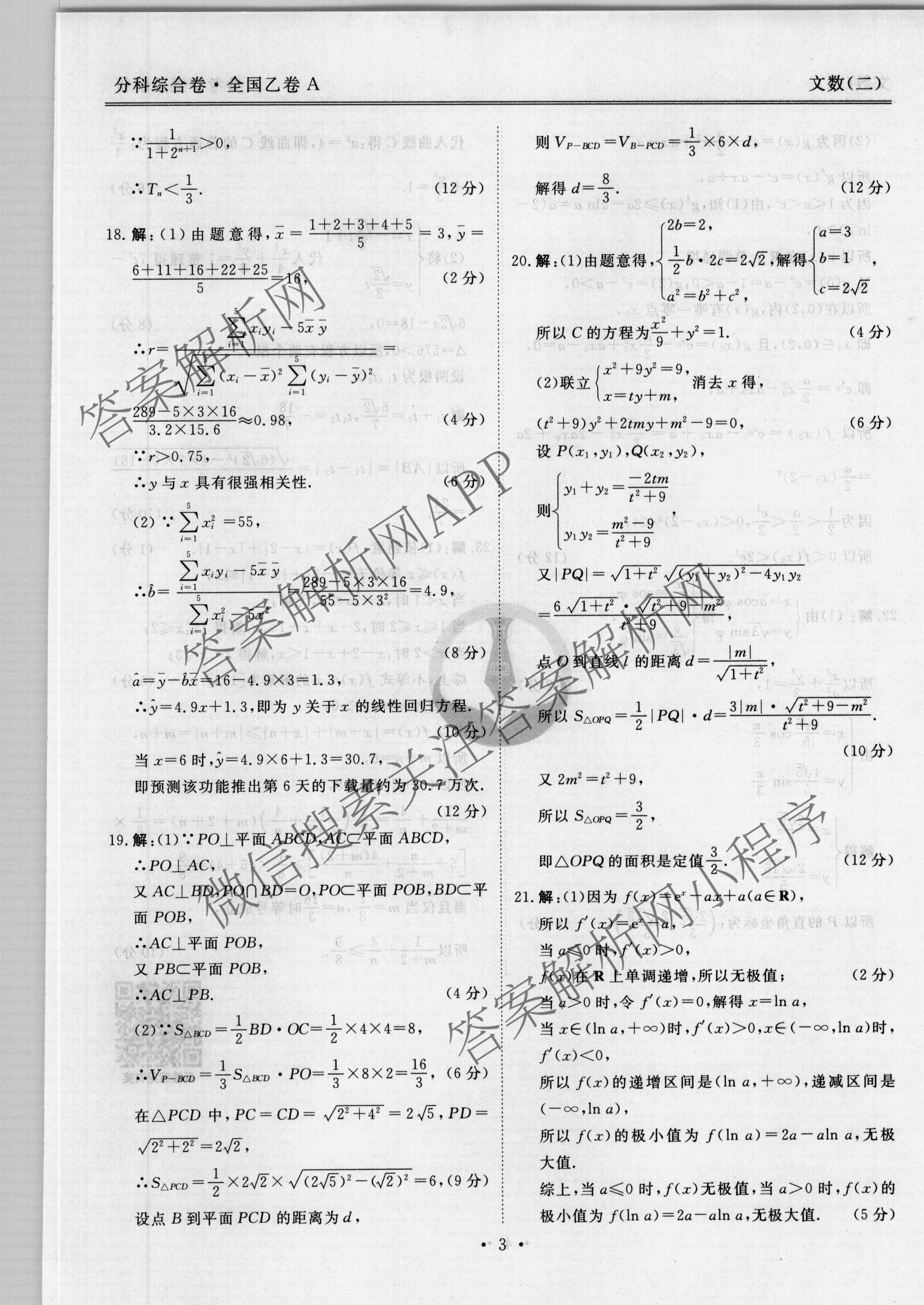 - [高三]2022届(衡水金卷先享题) 分科综合卷 全国乙卷A 文数(二)2答案