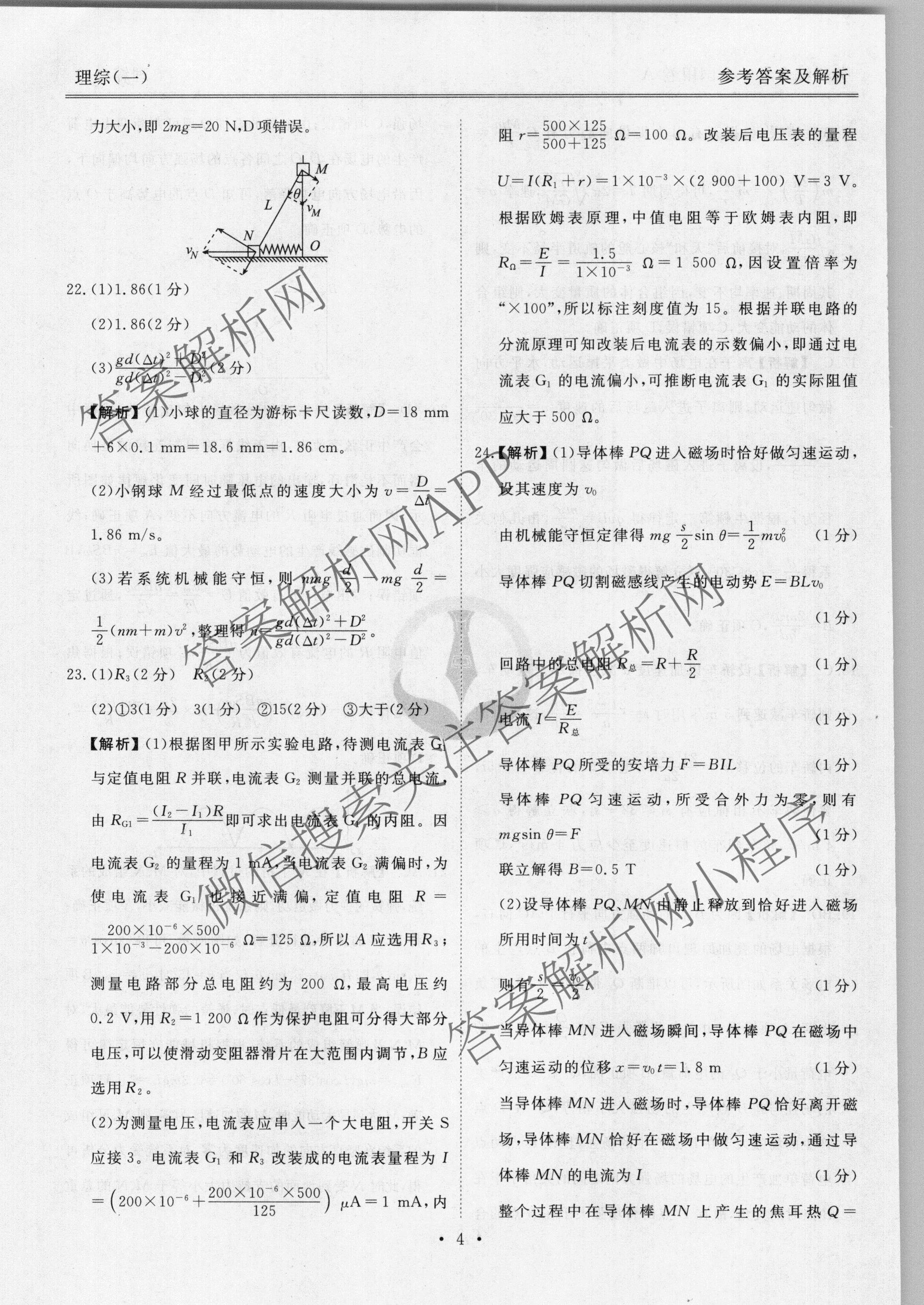 - 2022届[衡水金卷先享题] 分科综合卷 全国甲卷A 物理(一)1答案