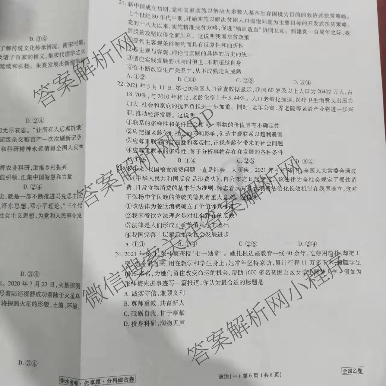 - 2022届(衡水金卷先享题) 分科综合卷 全国甲卷 政治(一)1答案