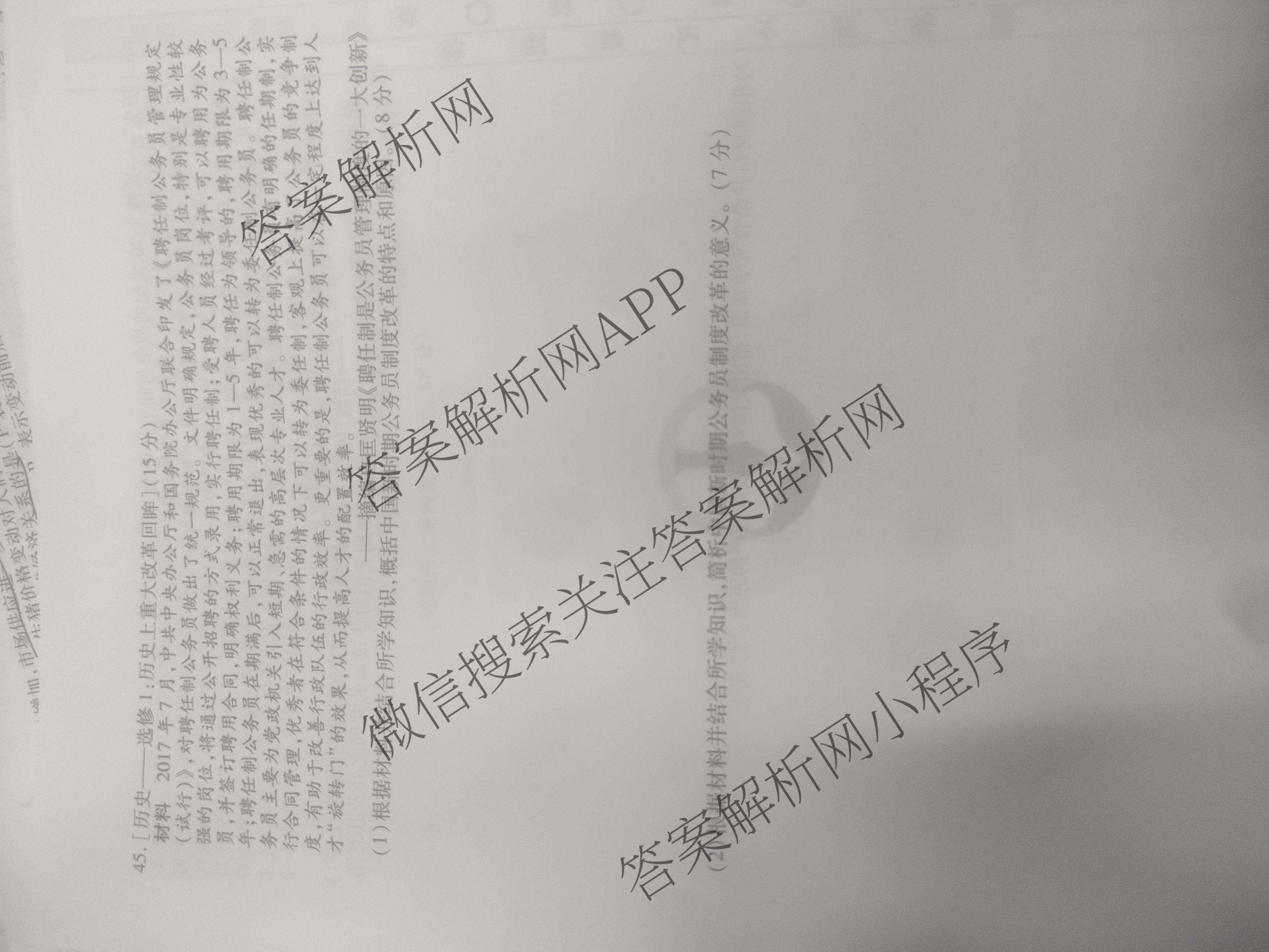 - 2022届[衡水金卷先享题] 分科综合卷 全国甲卷 历史(一)1答案