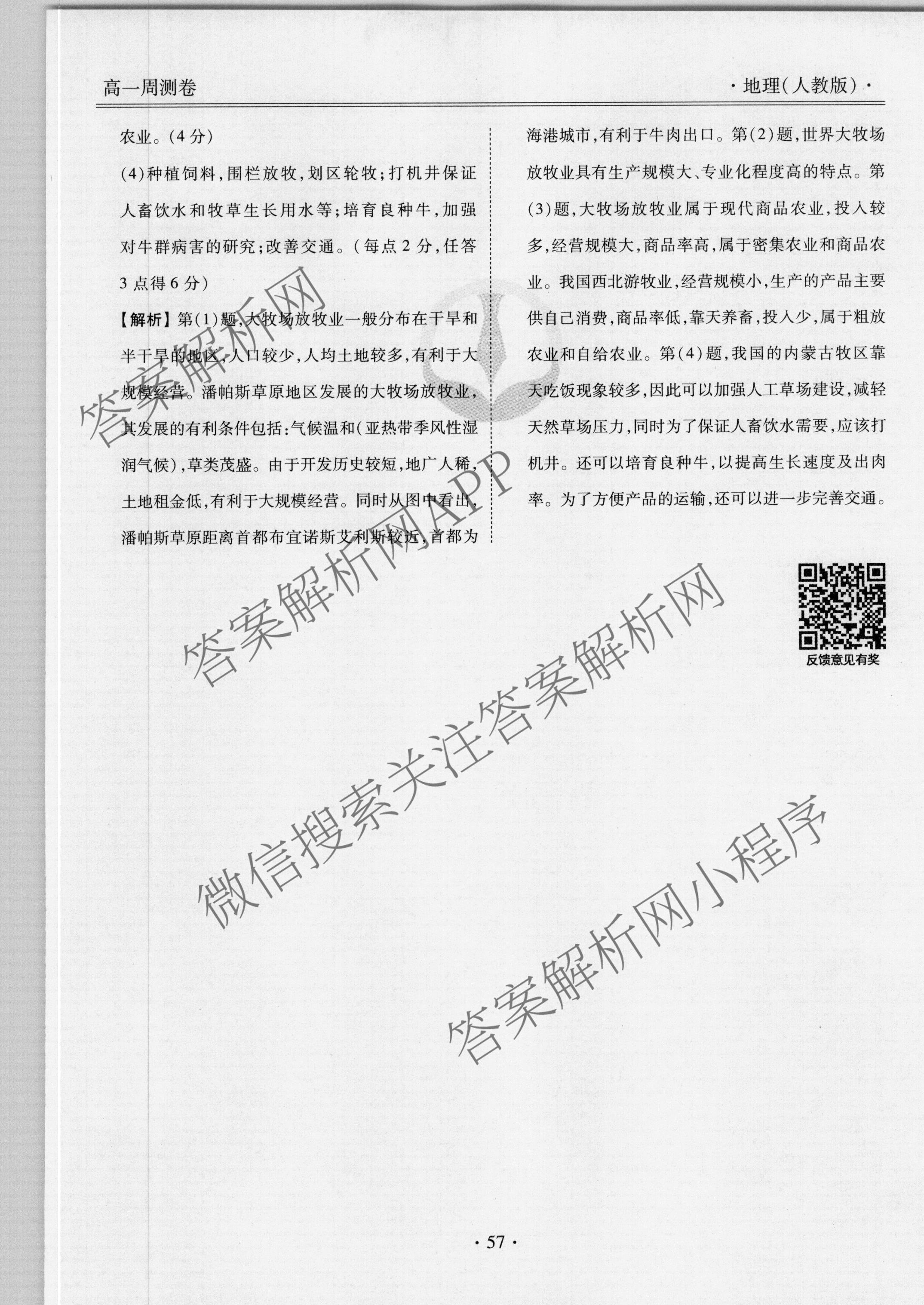 2021-2022衡水金卷先享题高一同步周测卷地理人教版(二十)20答案
