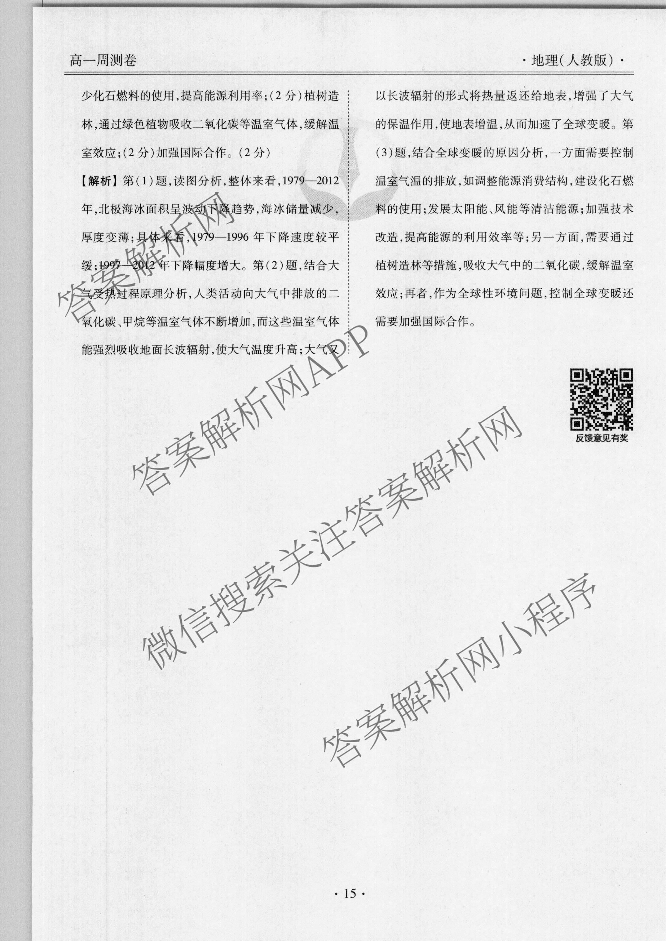 2021-2022衡水金卷先享题高一同步周测卷地理人教版(七)7答案
