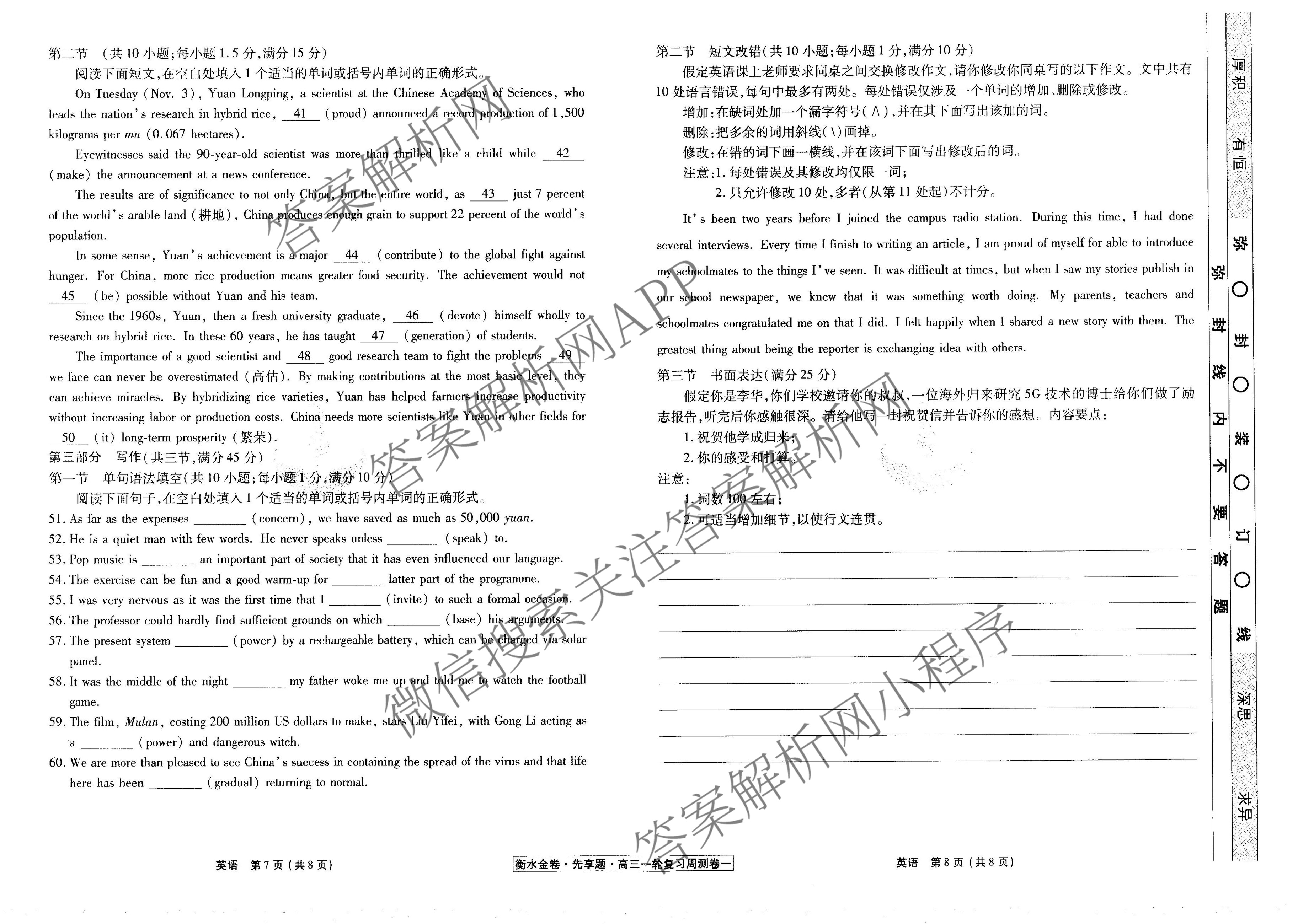 2021-2022衡水金卷先享题(老高考)高三一轮复习周测卷英语(一)1试题,目前衡水金卷先享题答案网已经汇总了2021-2022衡水金卷先享题(老高考)高三一轮复习周测卷英语(一)1试题的各科答案和试卷,获取更多衡水金卷先享题答案解析,请在关注本站。