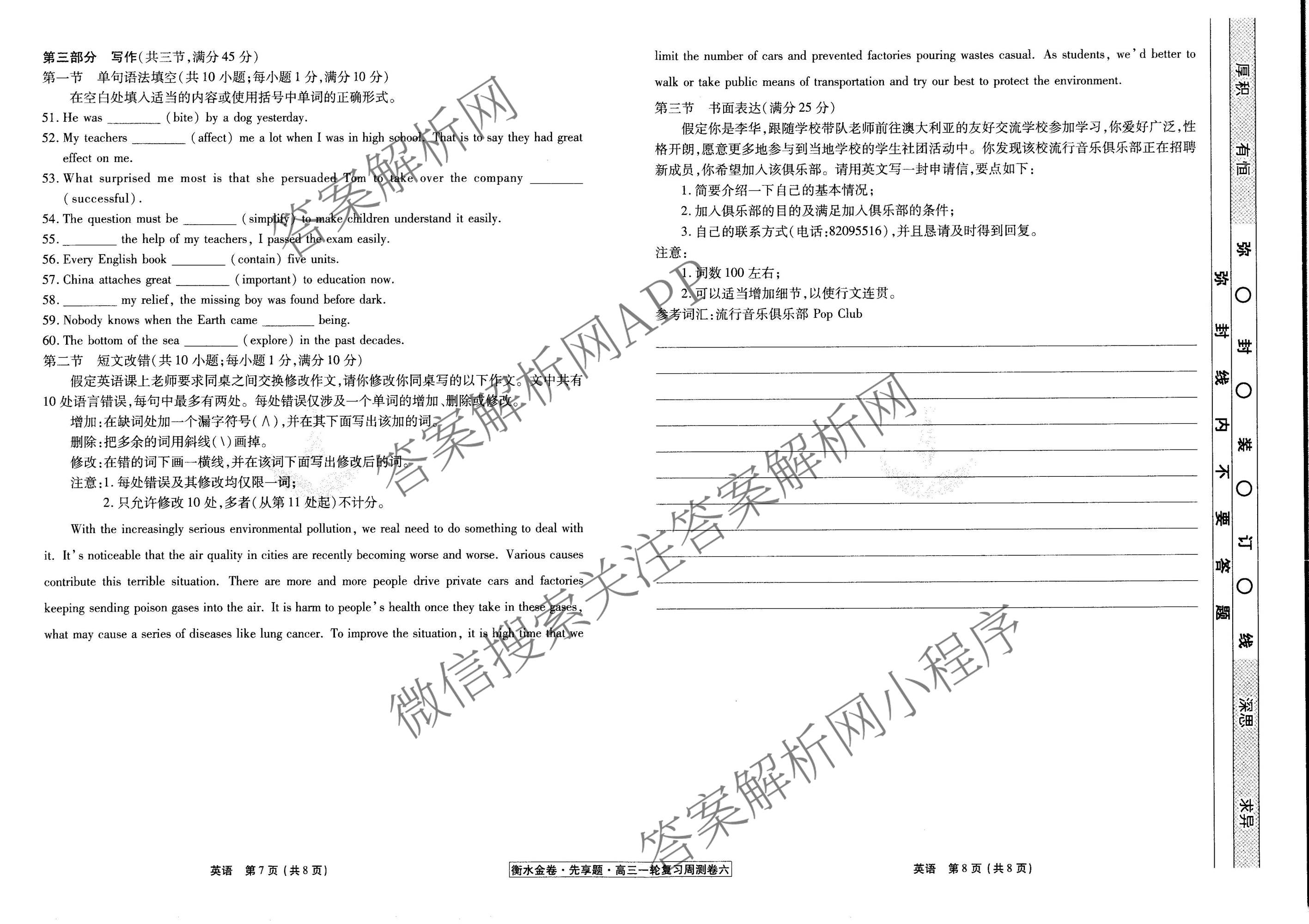 2020-2021衡水金卷先享题(老高考)周测卷英语(六)6试题