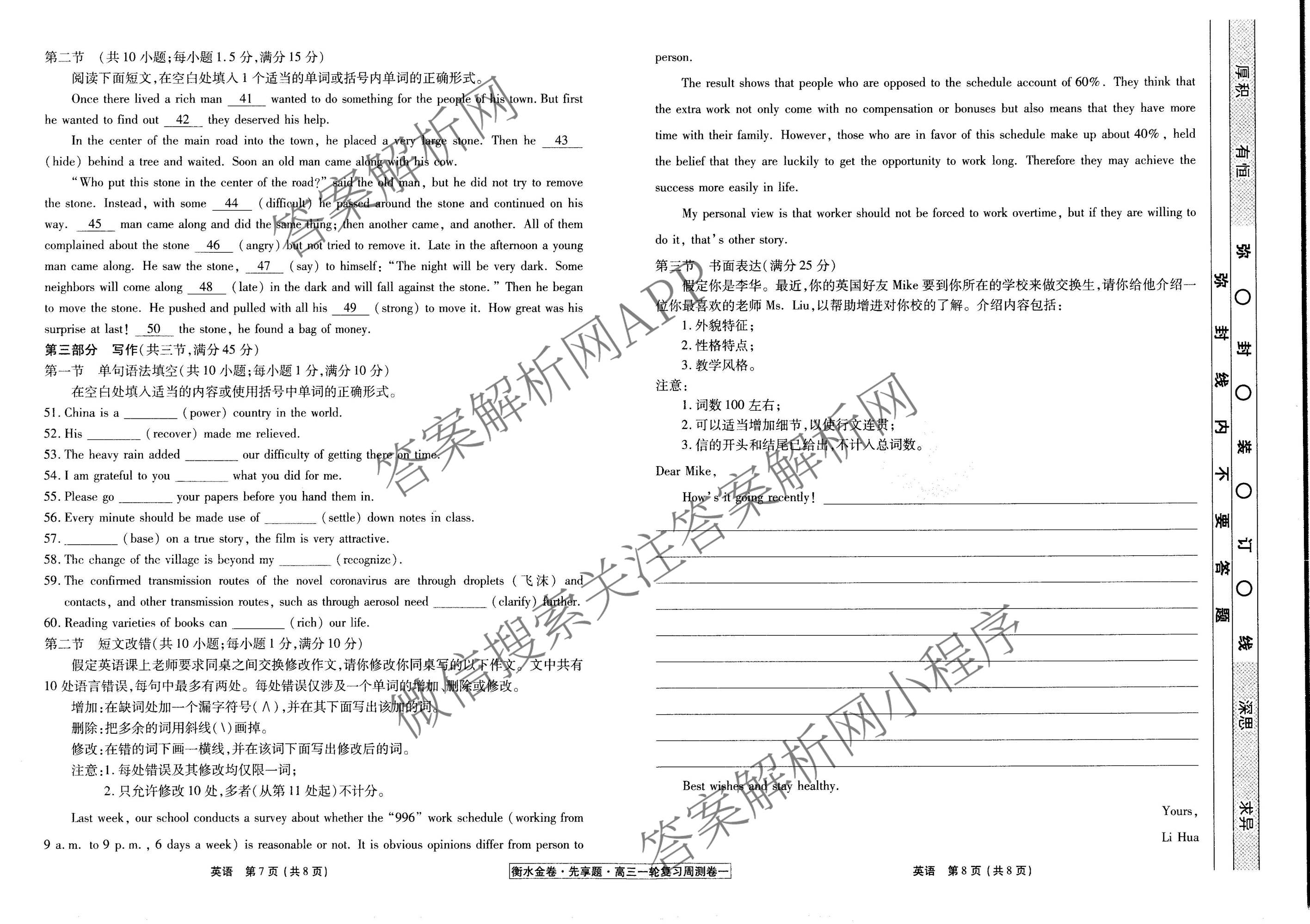 2020-2021衡水金卷先享题(老高考)周测卷英语(一)1试题