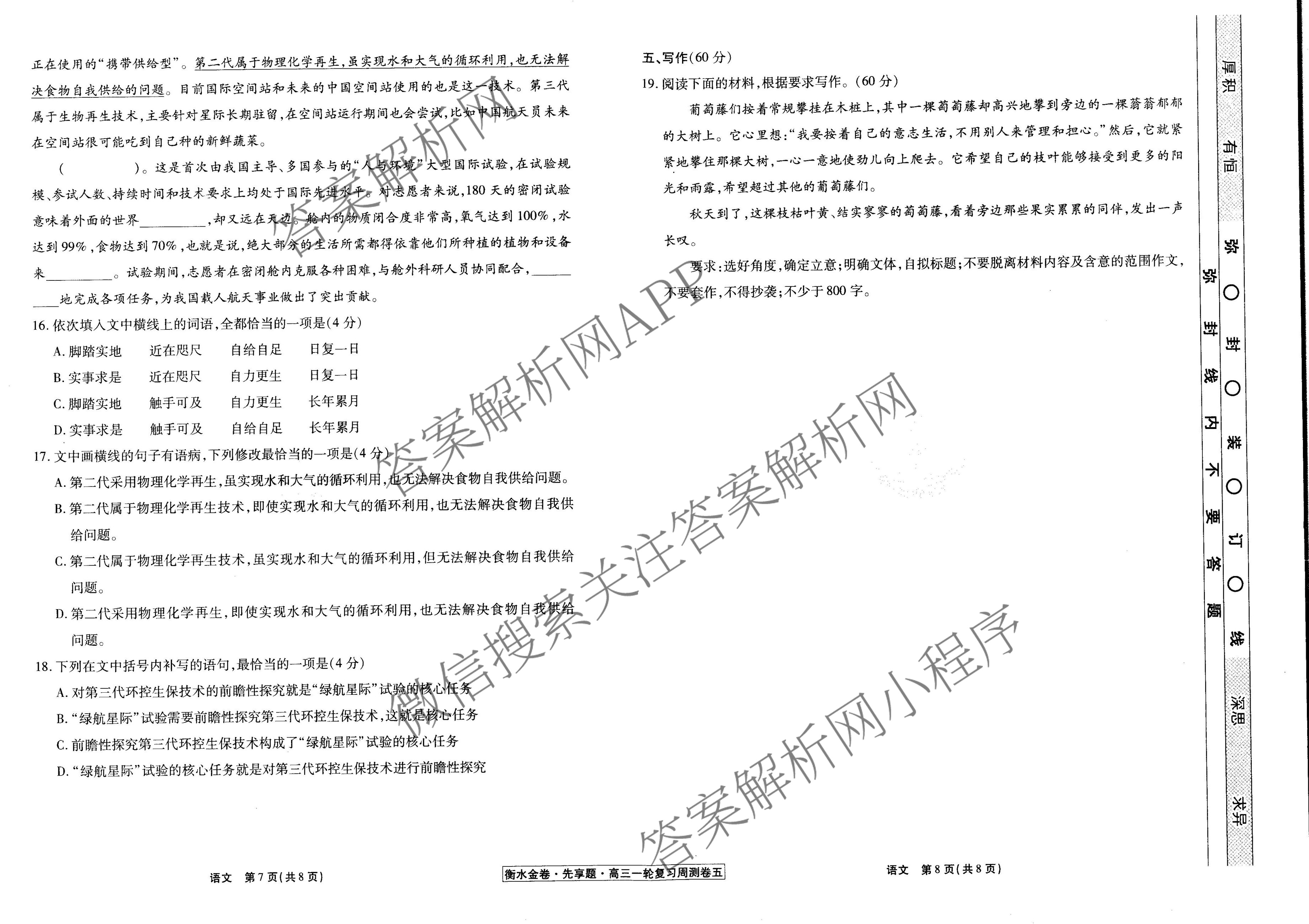 2020-2021衡水金卷先享题(老高考)·周测卷·语文(五)5试题,目前衡水金卷先享题答案网已经汇总了2020-2021衡水金卷先享题(老高考)·周测卷·语文(五)5试题的各科答案和试卷,获取更多衡水金卷先享题答案解析,请在关注本站。