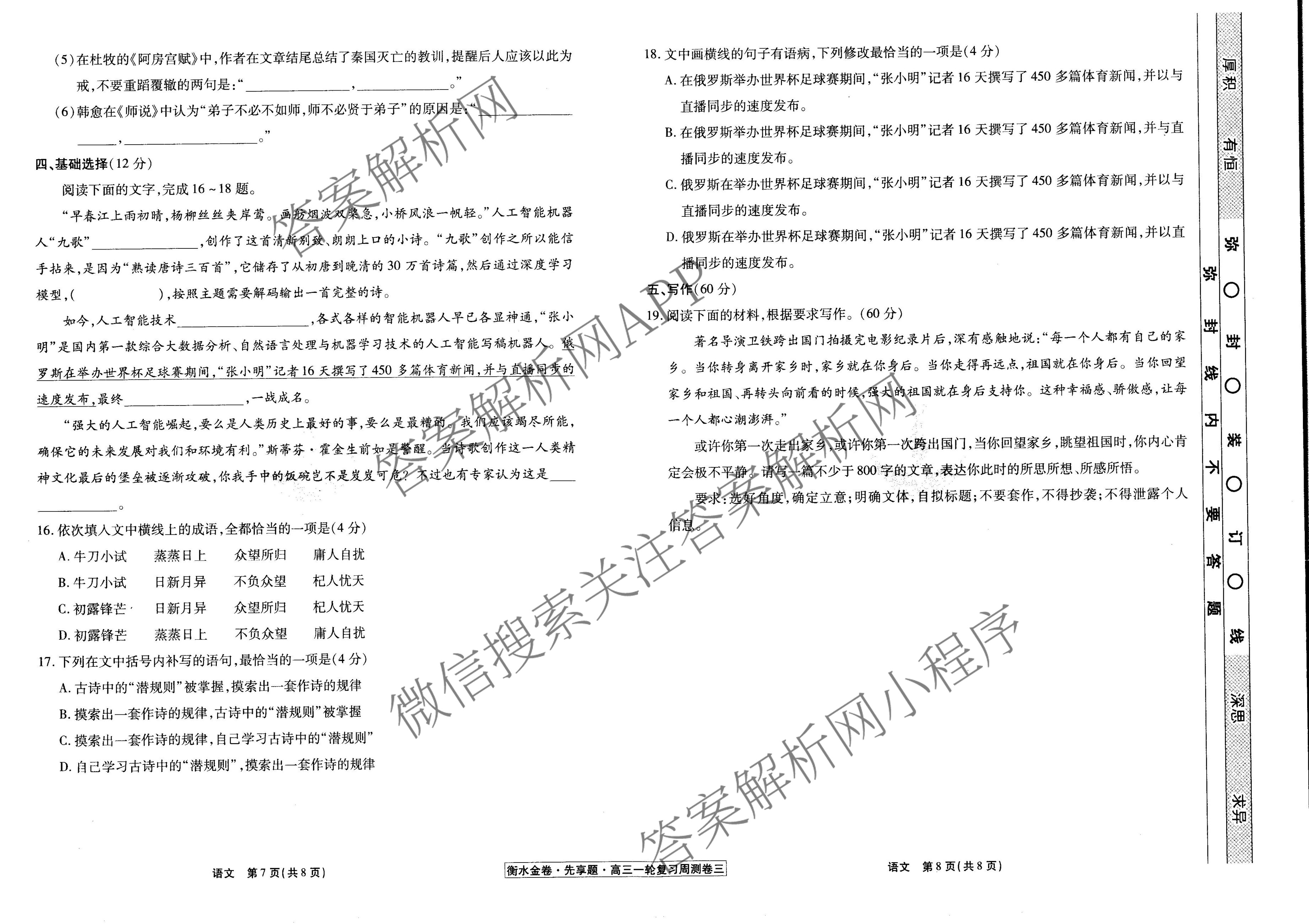 2020-2021衡水金卷先享题(老高考)·周测卷·语文(三)3试题,目前衡水金卷先享题答案网已经汇总了2020-2021衡水金卷先享题(老高考)·周测卷·语文(三)3试题的各科答案和试卷,获取更多衡水金卷先享题答案解析,请在关注本站。