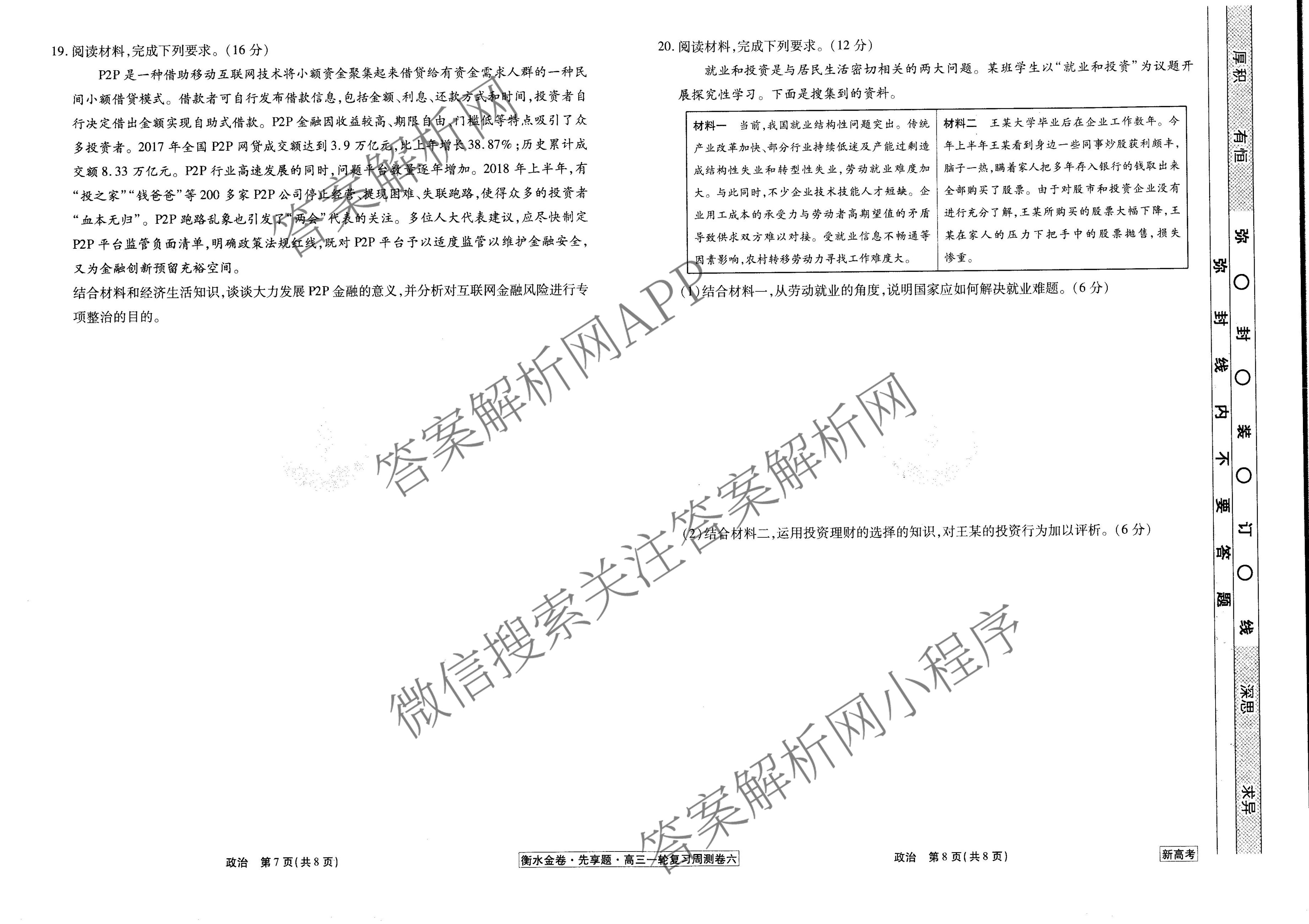 2020-2021衡水金卷先享题(新高考)·周测卷·政治(六)6试题,目前衡水金卷先享题答案网已经汇总了2020-2021衡水金卷先享题(新高考)·周测卷·政治(六)6试题的各科答案和试卷,获取更多衡水金卷先享题答案解析,请在关注本站。